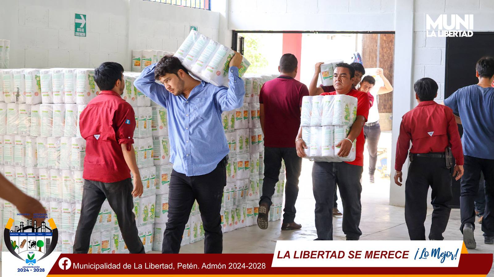 El día de hoy se llevó a cabo la recepción de raciones de alimentos las cuales serán entregadas a familias vulnerables a la inseguridad alimentaria y Nutricional INSAN en el municipio de La Libertad del casco urbano y comunidades rurales.