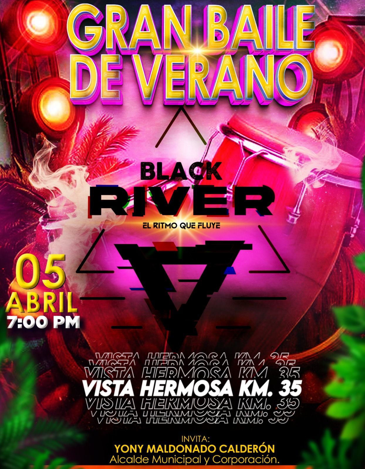 El Alcalde Municipal #YonyMaldonado y su Corporación tienen el placer de invitarte a un espectacular Baile de Verano con la mejor Discoteca de Petén Black River