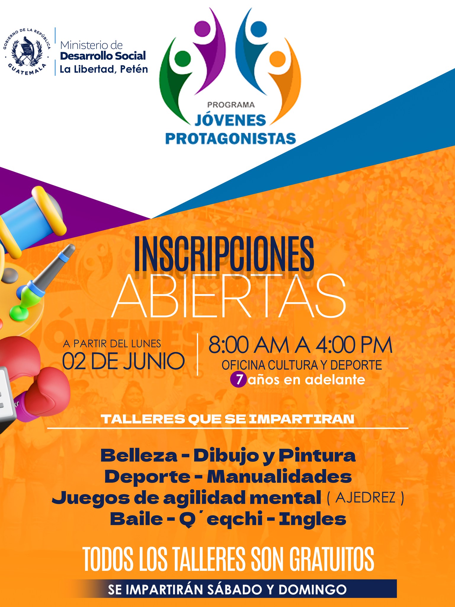 LAS INSCRIPCIONES INICIAN ESTE 02 DE JUNIO EN Oficina Municipal de la Juventud, Cultura y Deportes