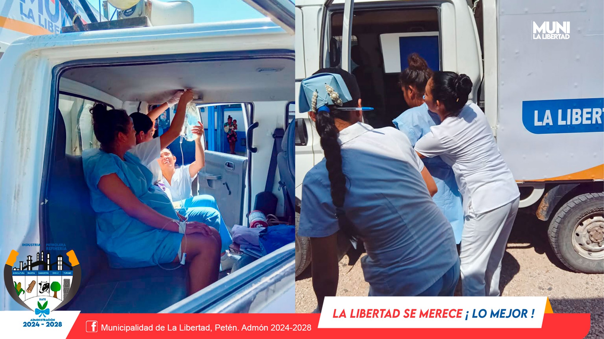 La Municipalidad de La Libertad, Petén. Admón 2024-2028 presidida por el sr. Yoni Maldonado Calderón brinda apoyo con ambulancia para trasladar de emergencia a paciente en estado de gestación hacia el Hospital distrital de Sayaxché, Petén.