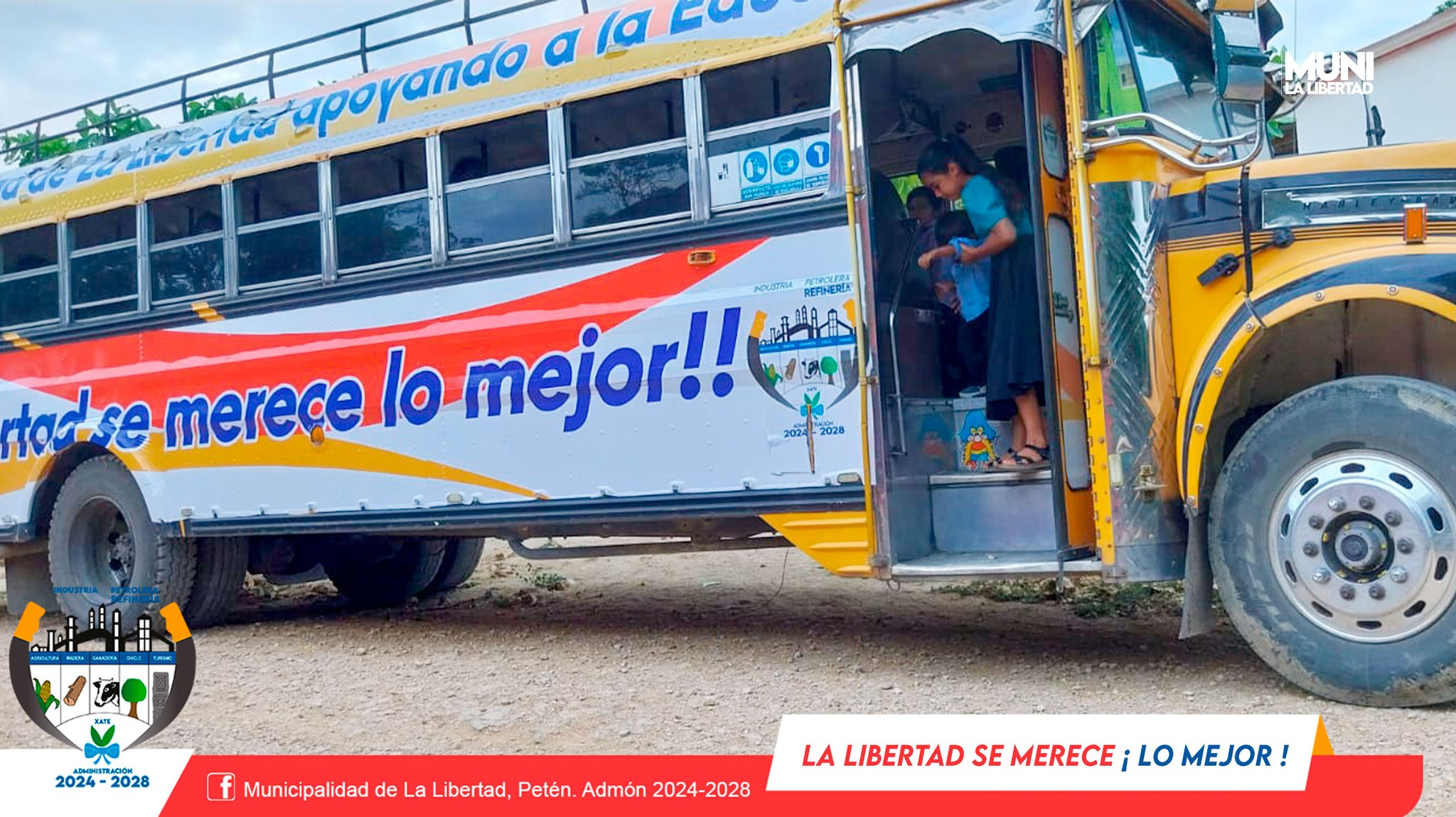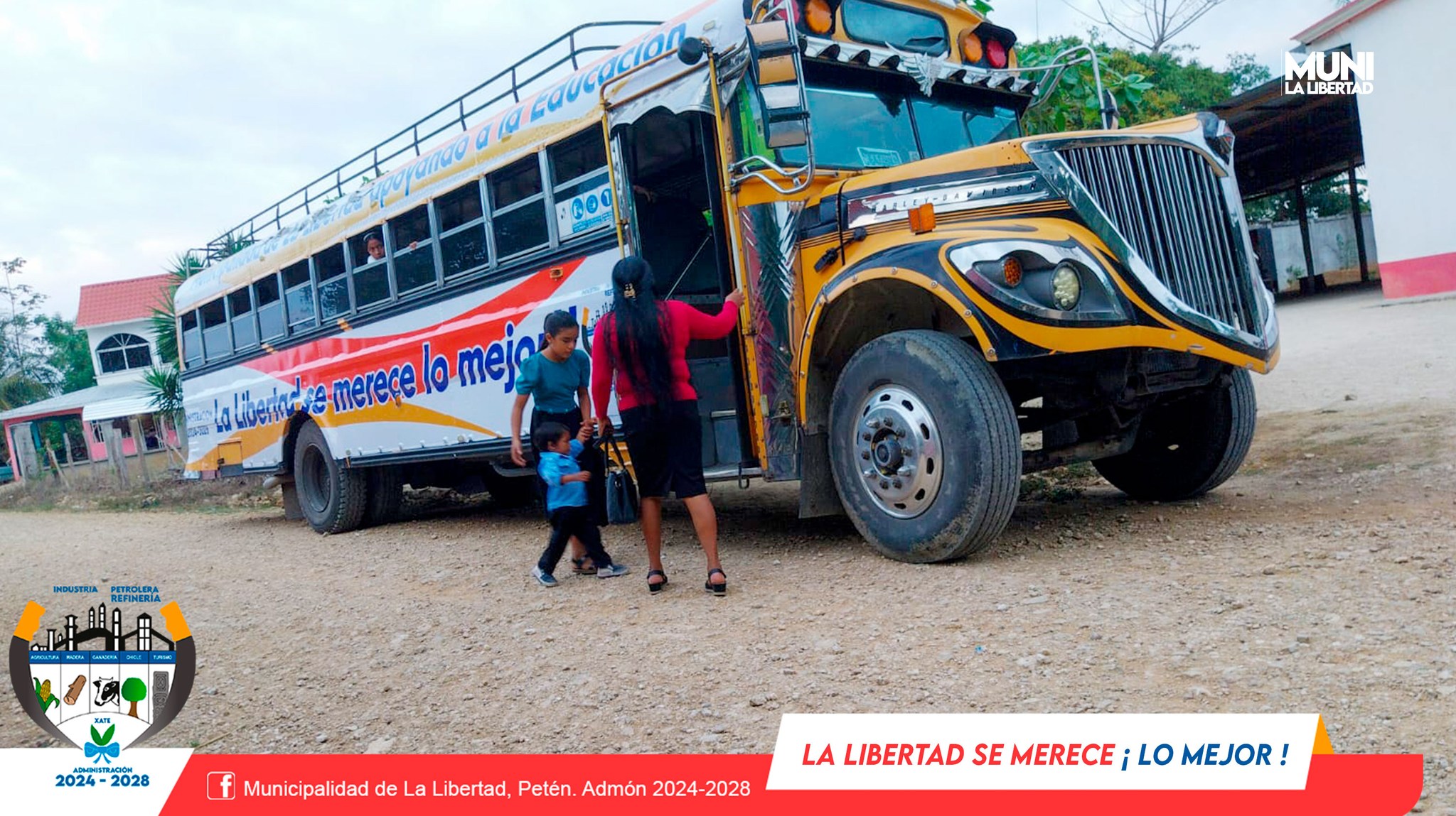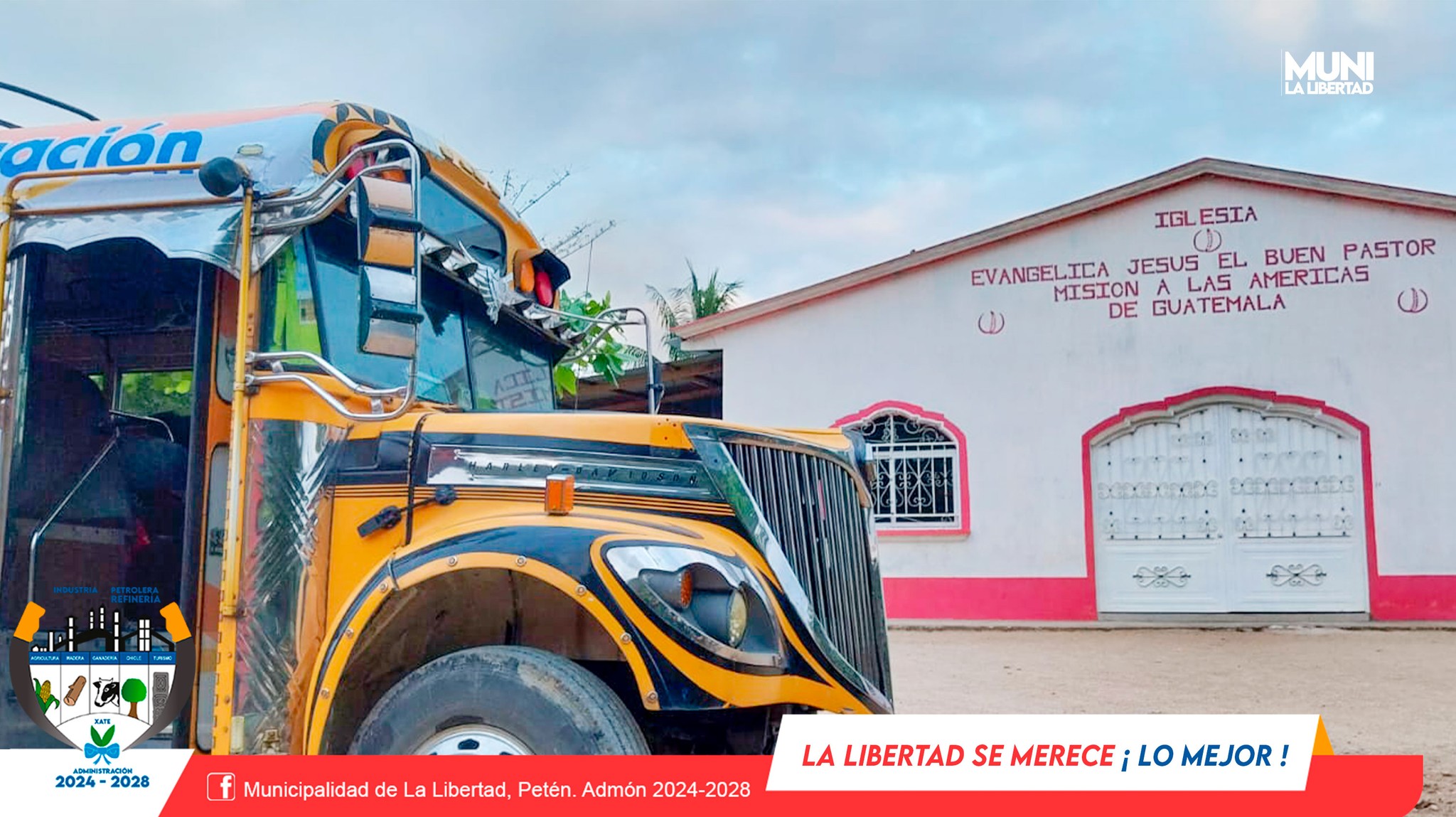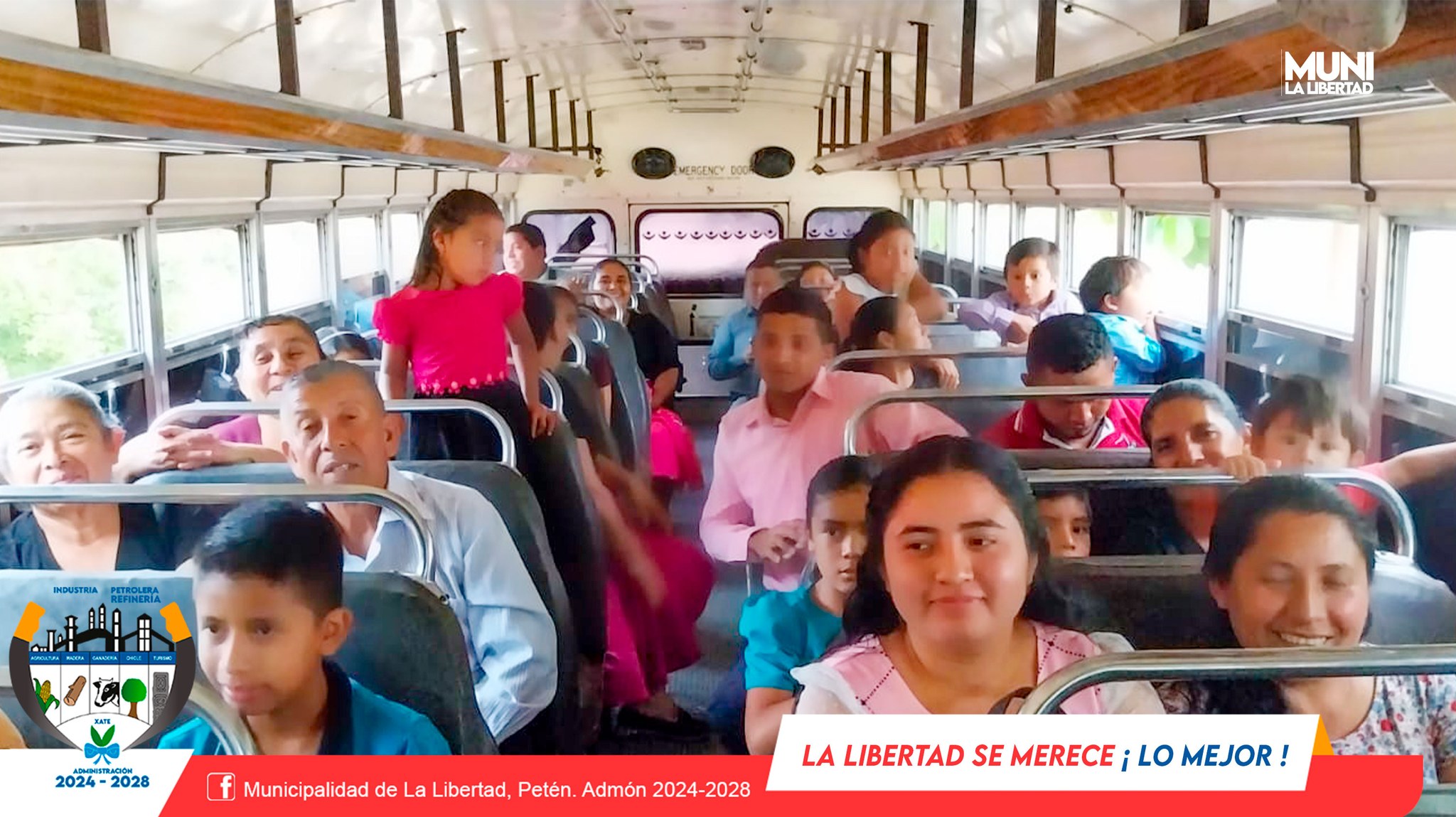 La Municipalidad de La Libertad, Petén, presidida por el Sr. alcalde Municipal Yony Maldonado Calderón, brinda apoyo con transporte gratuito a la congregación de la Iglesia Evangélica Jesús El Buen Pastor quienes asistes a campaña evangelística que se realiza en el municipio de San Benito.