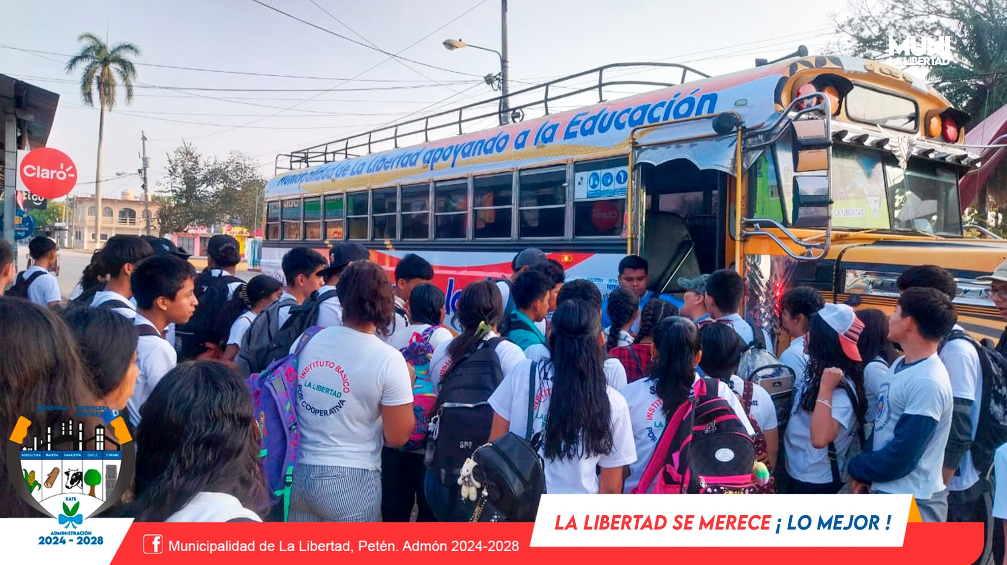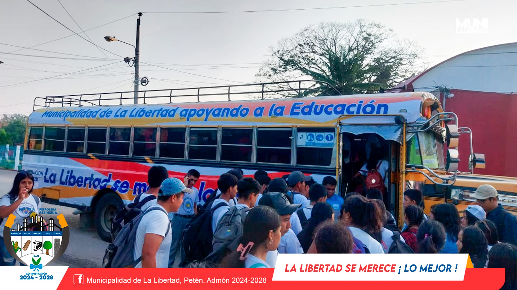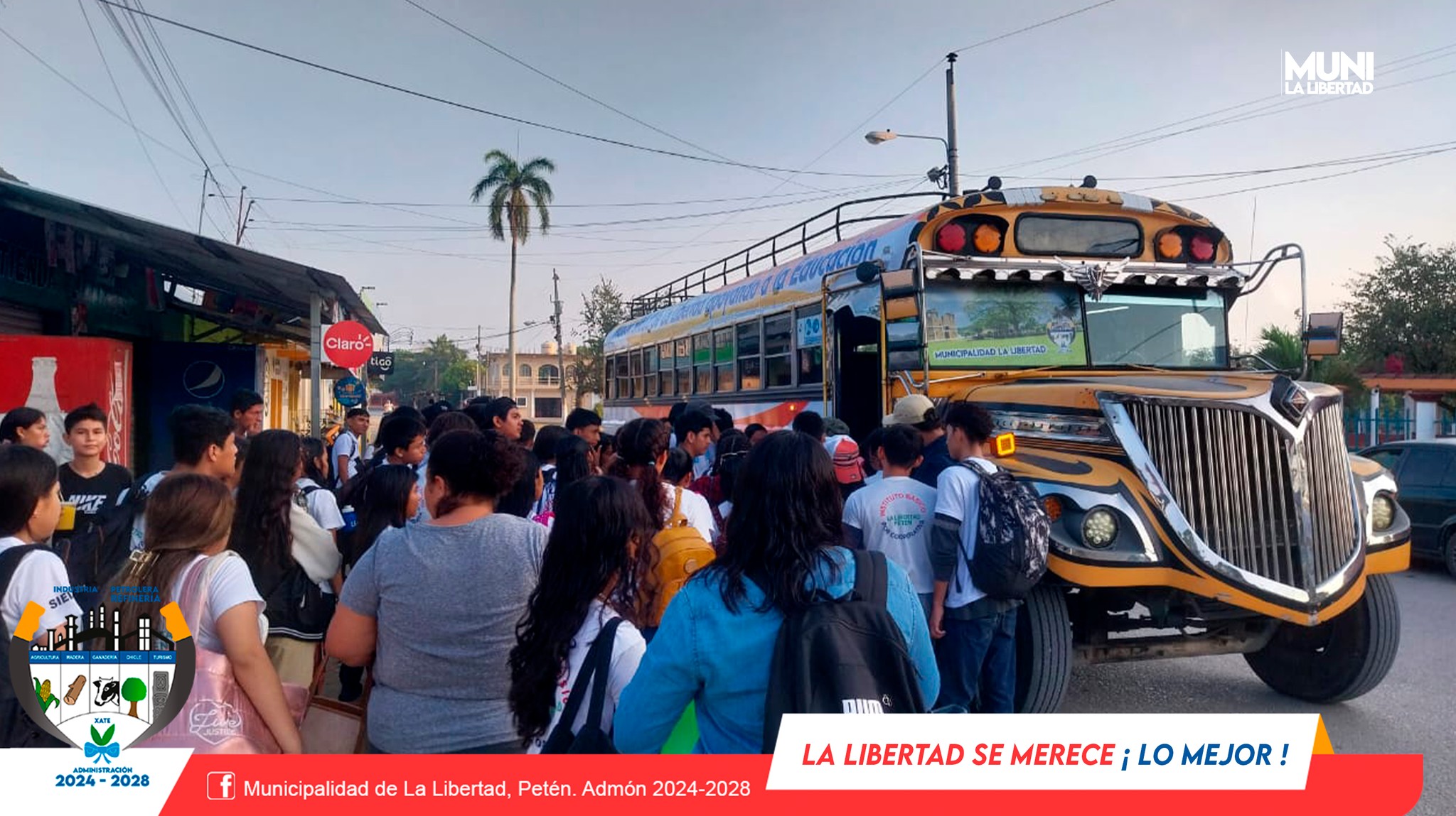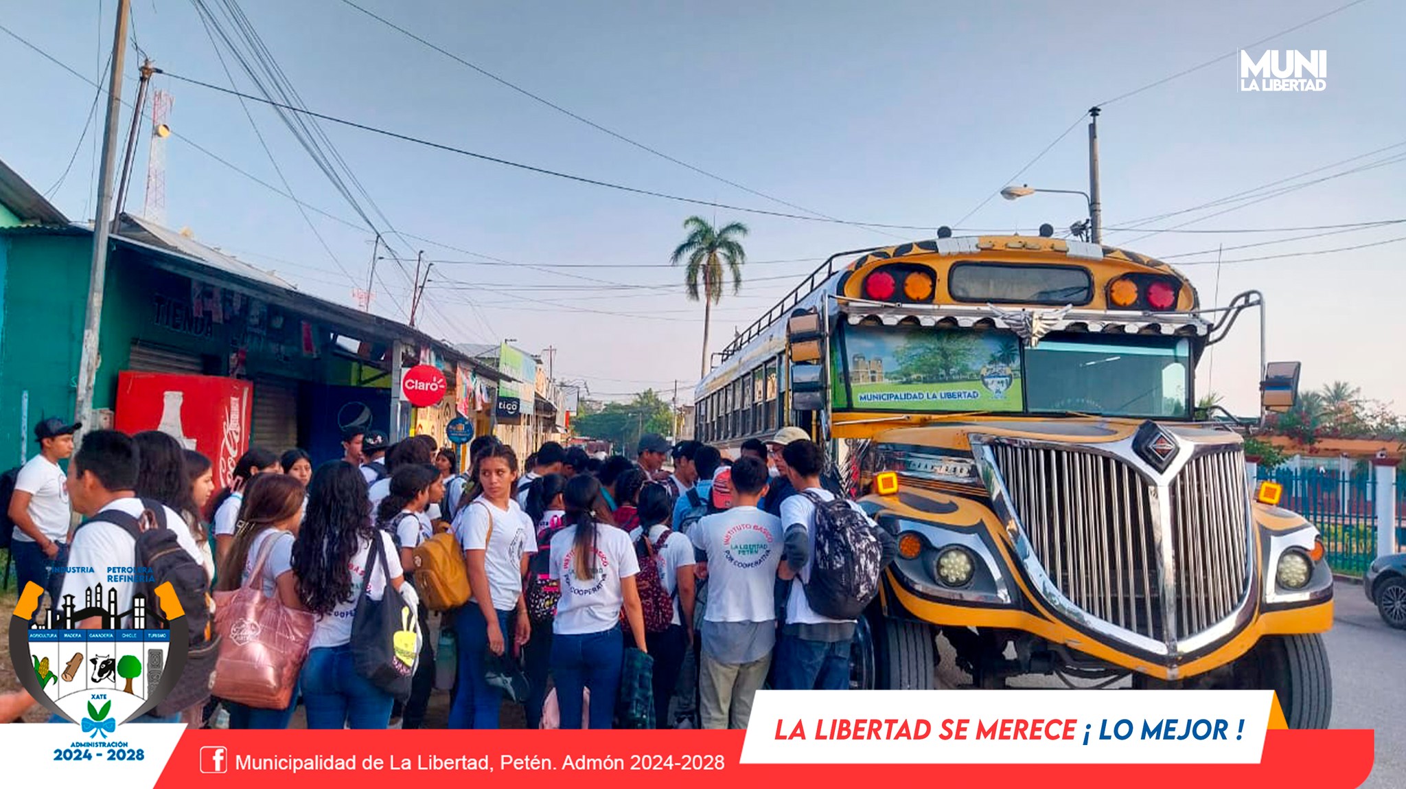 La Municipalidad de La Libertad, Petén presidida por el Sr. Yony Maldonado Calderón brinda apoyo con trasporte a estudiantes del Instituto por Cooperativa de La Libertad, quienes realizarán actividad extraescolar en el Parque Nacional Tikal.