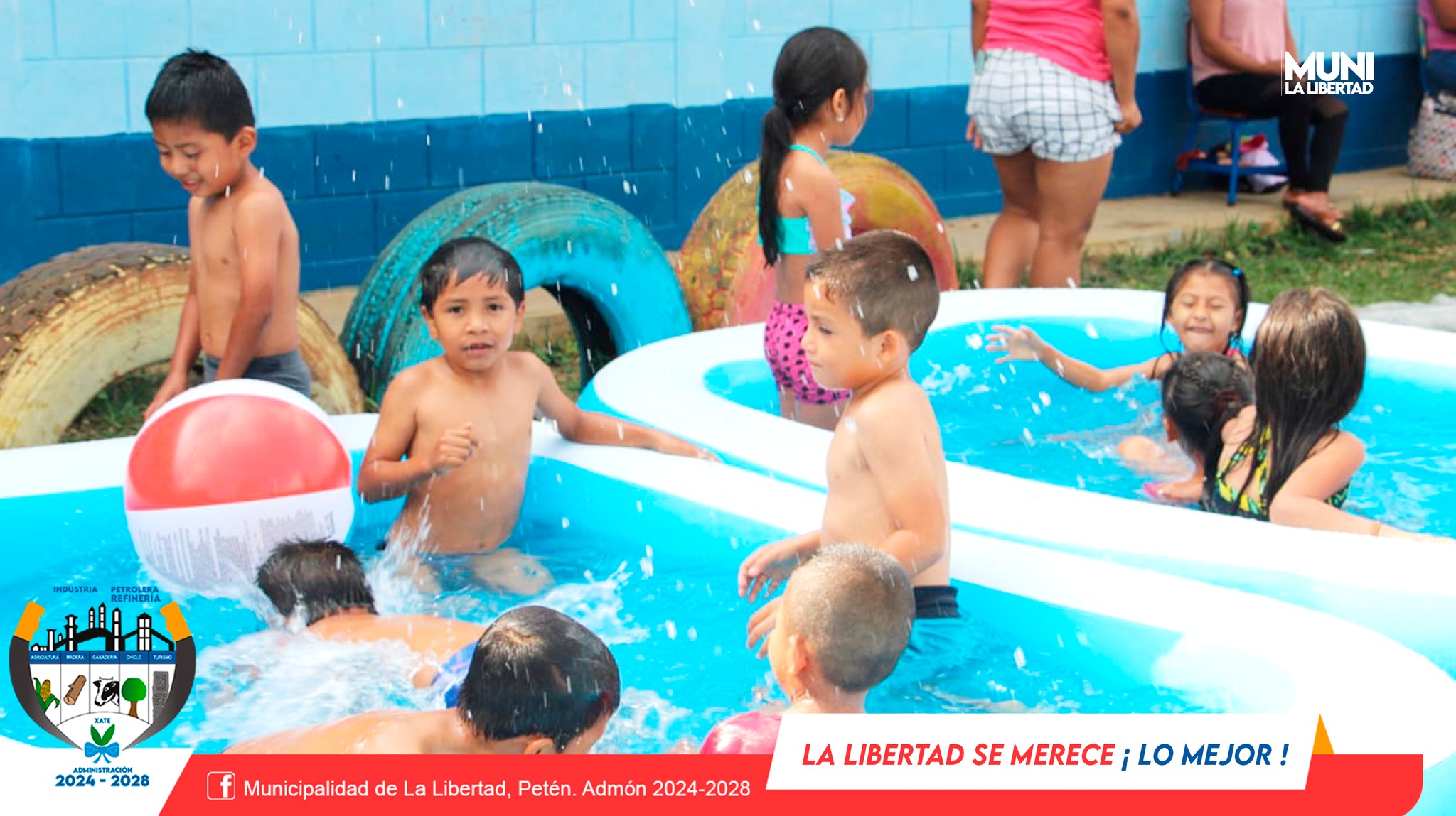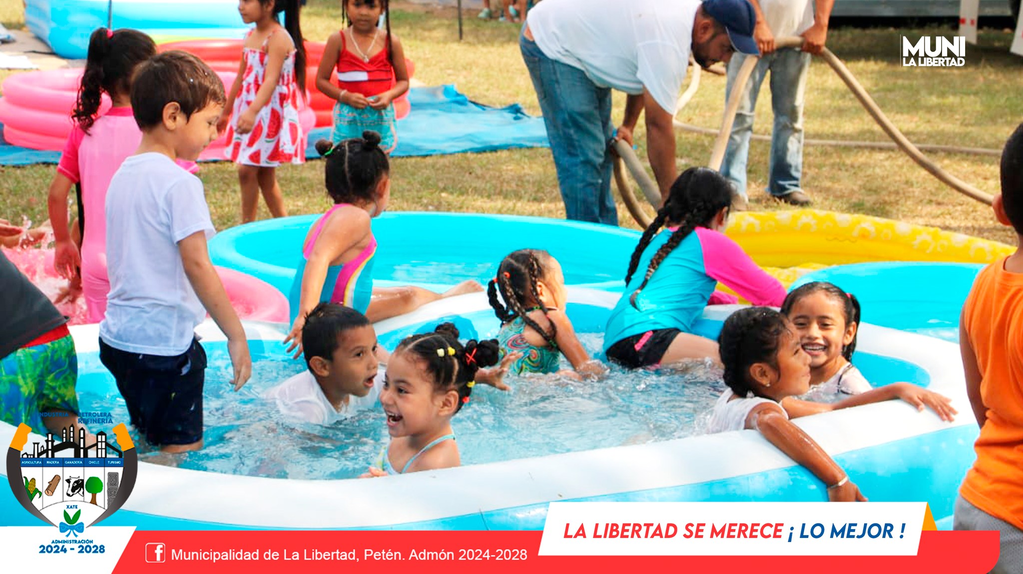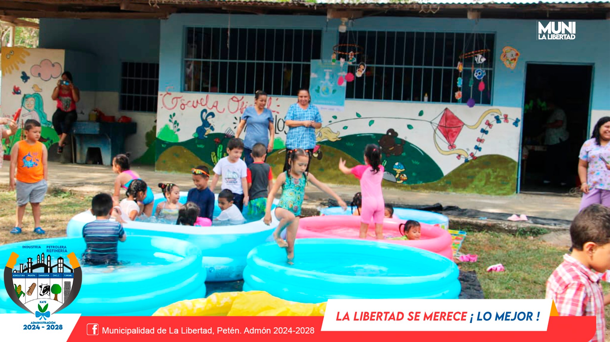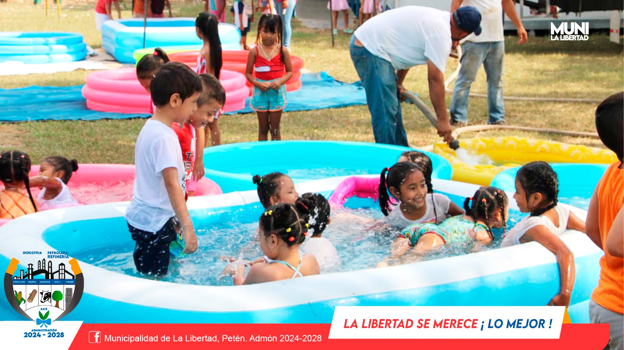 En una actividad llena de frescura, alegría y convivencia los niños del nivel preprimaria de diferentes escuelas del casco urbano de La Libertad disfrutaron del Splash Day.