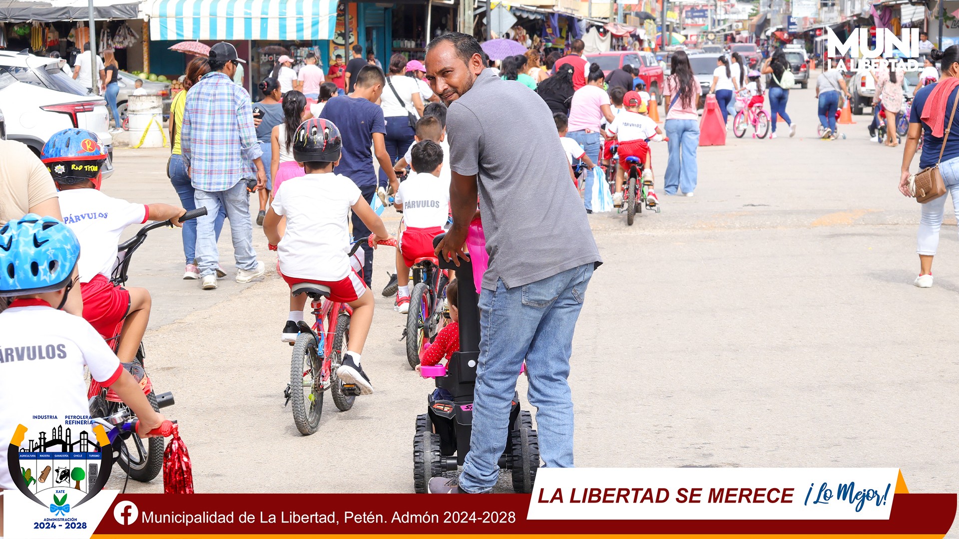 Por instrucciones del Sr. Alcalde Municipal #YonyMaldonado dimos acompañamiento a los niños y padres de familia disfrutan de un bici paseo organizado por las docentes de la Escuela Oficial de Párvulos «Rogelia Carlota Barquin Mendoza» Barrio El Centro La Libertad