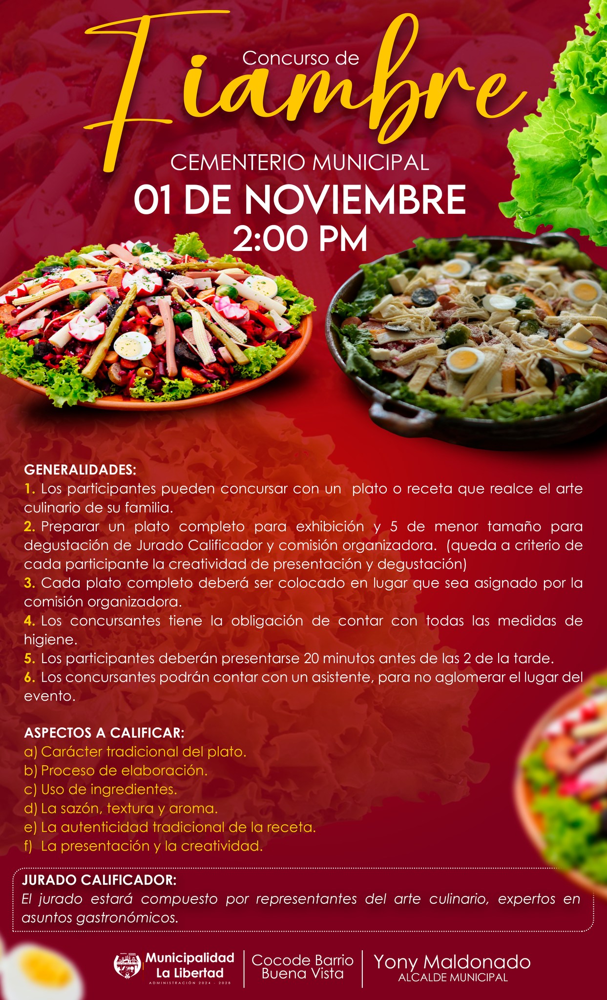 Este concurso está abierto a la participación de personas libertecas mayores de 18 años (damas y caballeros) amantes a la elaboración del fiambre.
