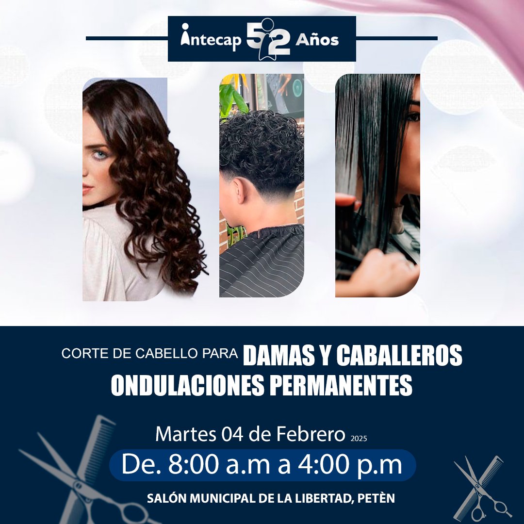 Estudiantes de la carrera de Cultora de Belleza de INTECAP realizarán cortes de cabello gratuitos y ondulaciones permanentes.