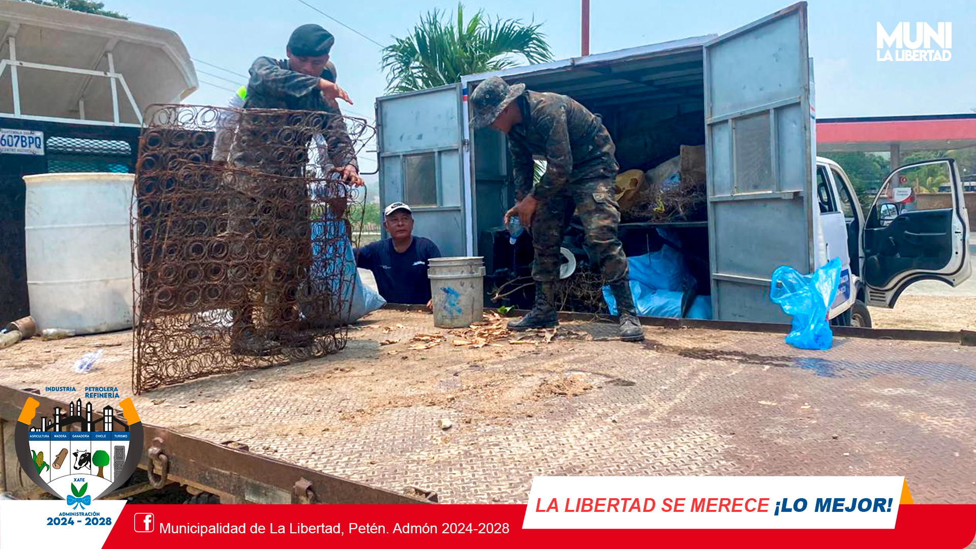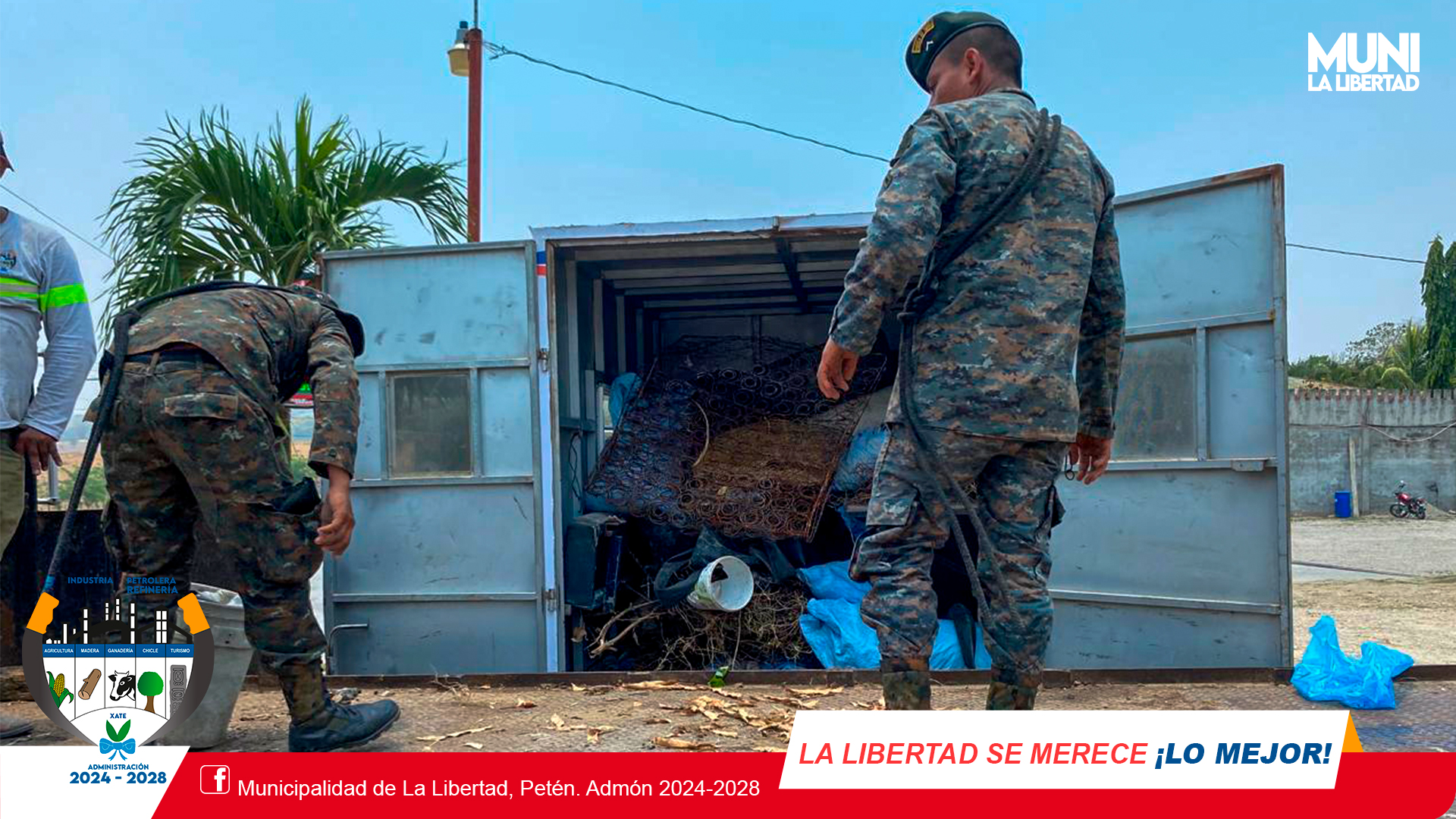 Como parte de las acciones en el cuidado del medio ambiente, el día de hoy se realizó #TrenDeAseo en Aldea El Naranjo, en esta actividad se contó con el apoyo de la Municipalidad de La Libertad, Ministerio de Salud, Programa de Vectores, Alcaldía Auxiliar y Ejército de Guatemala.
