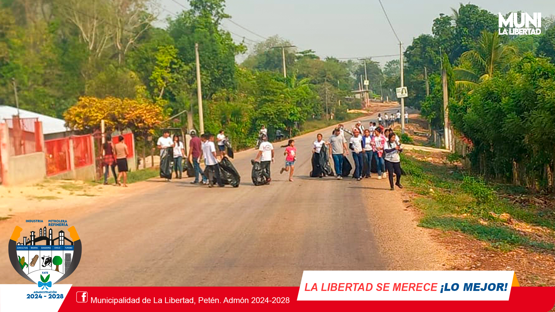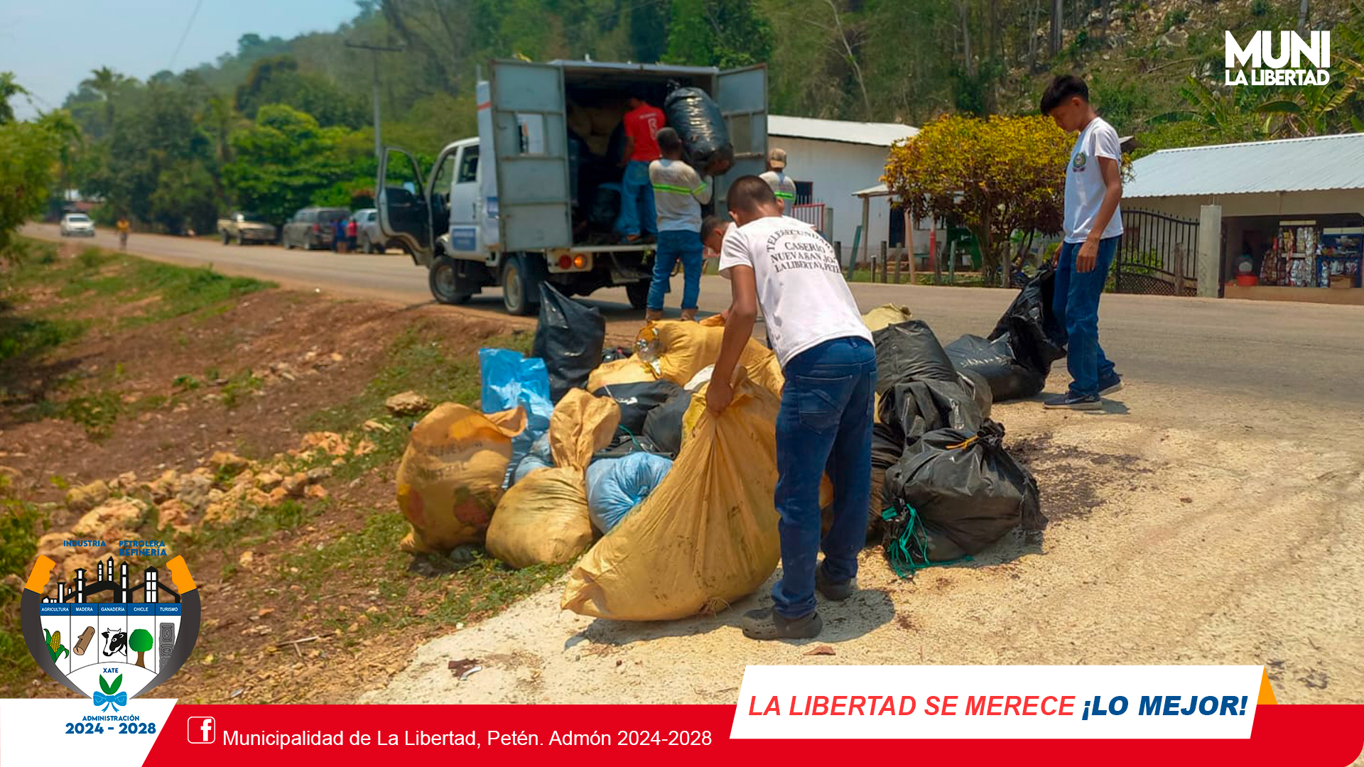 Con el apoyo de la Municipalidad de La Libertad, se realiza #TrenDeAseo en Caser铆o Nuevo San Jos茅 km. 96 en coordinaci贸n de COCODE, Programa de Vectores, estudiantes de tele secundaria y personal de Mini Muni #LasRuinas con el fin de mantener limpias las comunidades y evitar propagaci贸n del dengue.