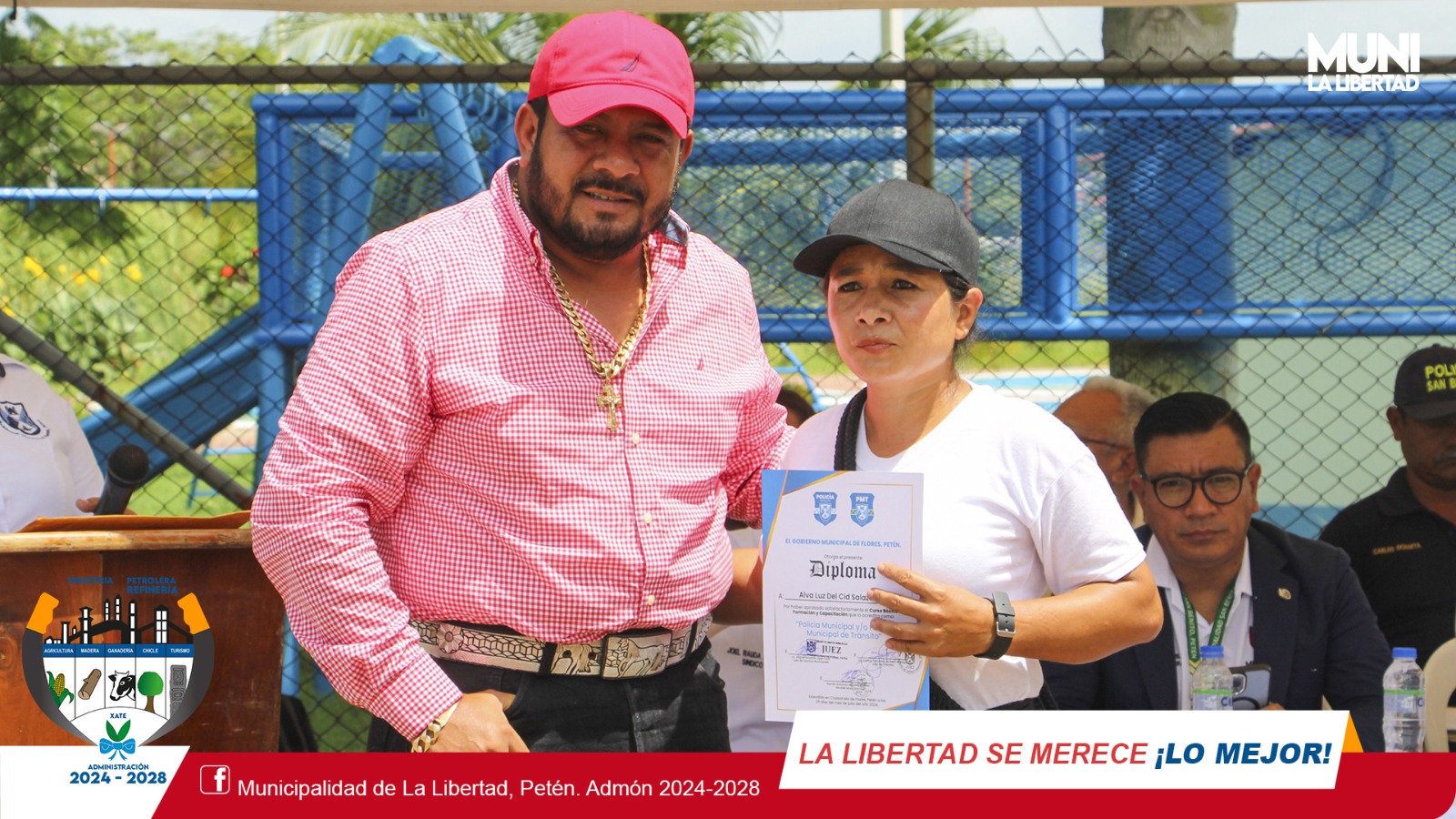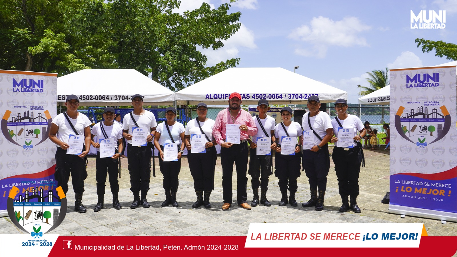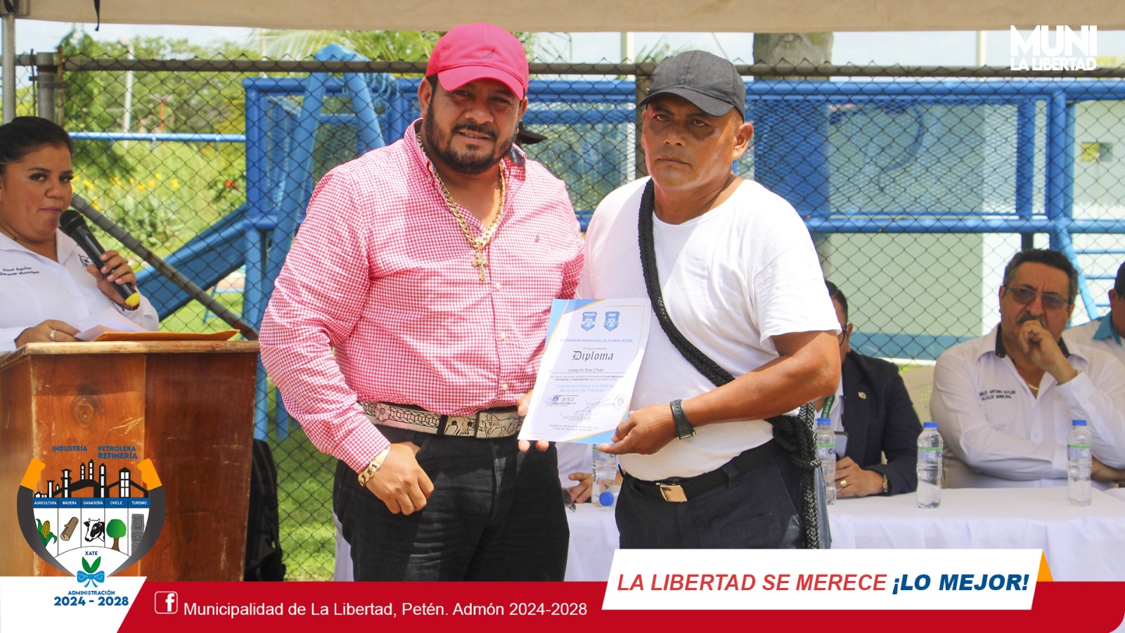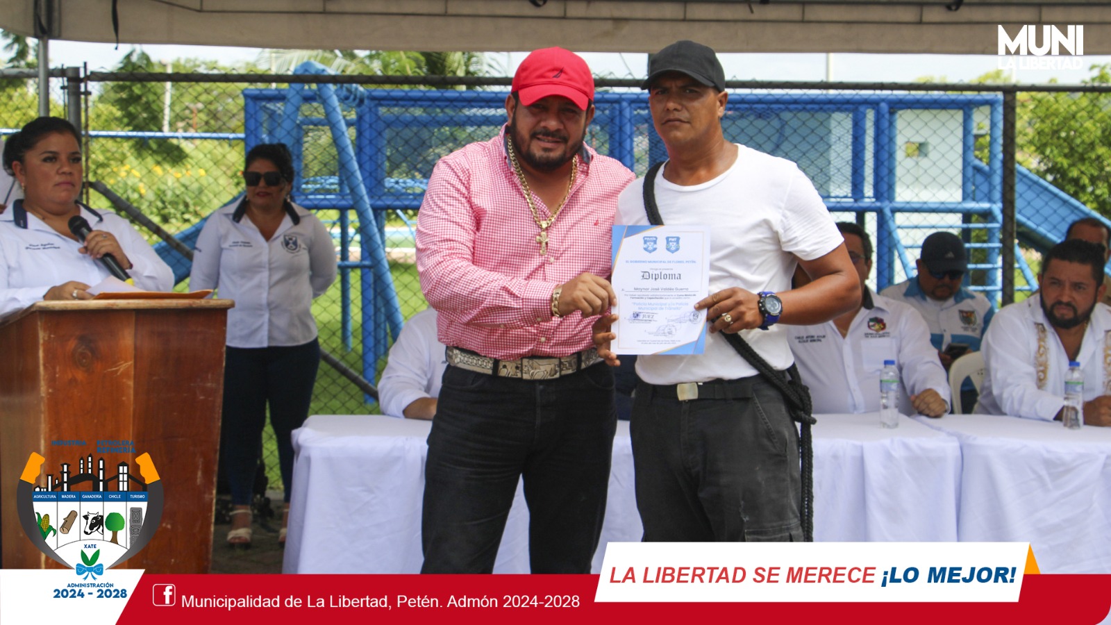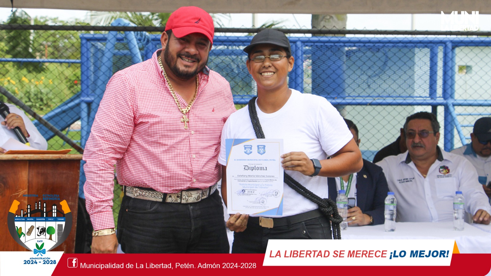 El sr. alcalde Municipal #YonyMaldonadoCalderon estuvo presente en la ceremonia de graduación de los nuevos Policías Municipales -PM- y Policías Municipales de Tránsito -PMT- de La Libertad, Flores, San Benito y Melchor, evento que tuvo lugar en Centro Cultural de Santa Elena, Flores, Petén.