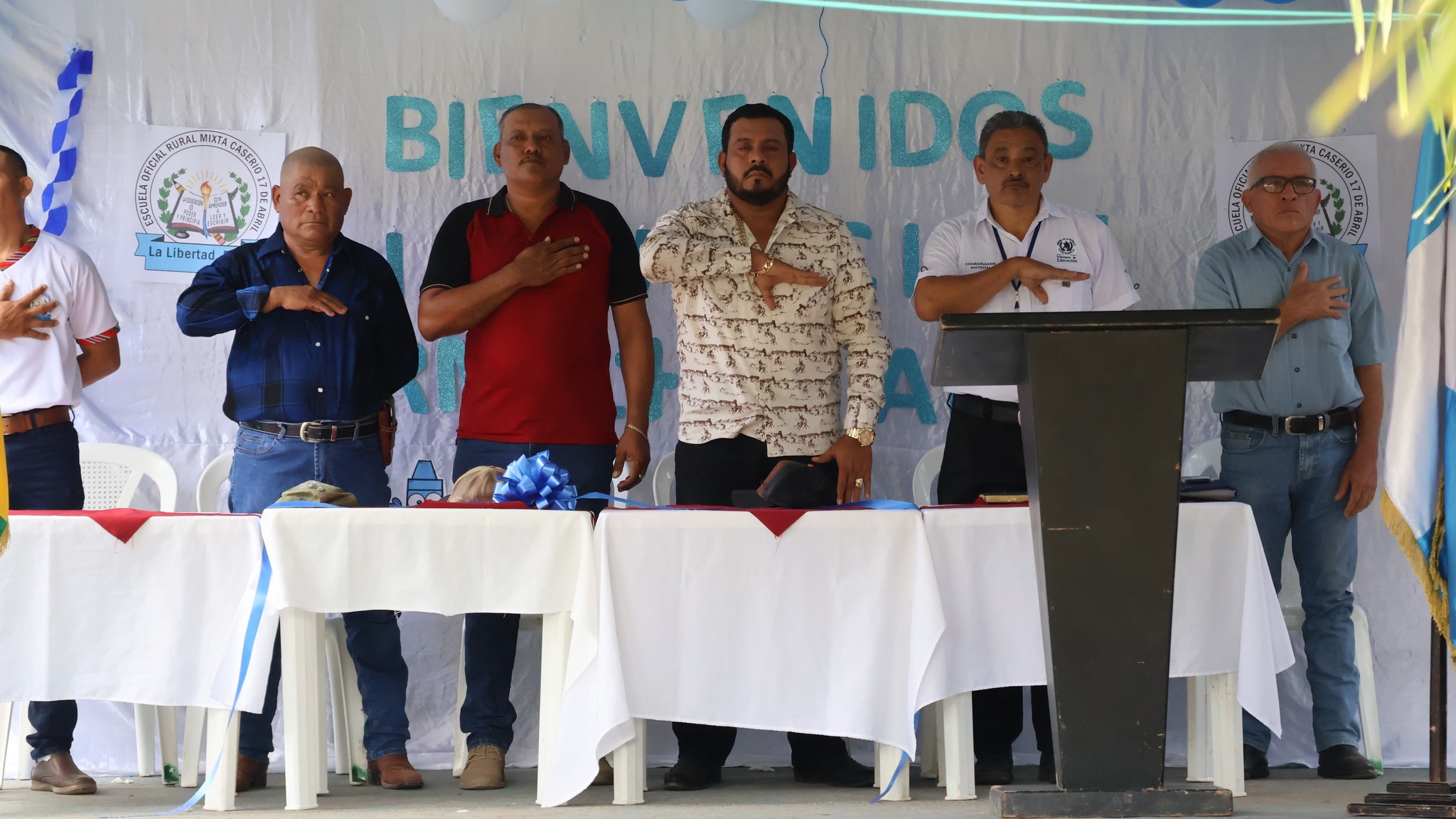 En la comunidad 17 de Abril Micro-Región#LaBomba, el Sr. Alcalde Municipal #YonyMaldonado junto a miembros de su honorable Corporación Municipal inauguraron la construcción de Muro Perimetral en Escuela Oficial Rural Mixta.
