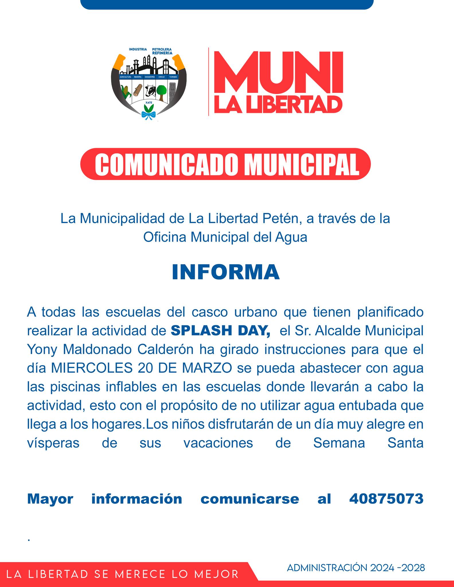 Participación Ciudadana Información Importante Para las Escuelas del Casco Urbano de La Libertad, Petén. Por admin Publicado el 15 marzo 2024 Compartir Tweet Compartir Compartir Email Comentarios Relacionado:portada Compartir Tweet Compartir Compartir Email Recomendado El Mercado Campesino Permite a los Pequeños Productores y Agricultores Ofrecer sus Productos. Vecinos Fueron Beneficiados con el Bono Social y Nutrición entregados por el (MIDES). Oficina Municipal de la Juventud, Cultura y Deportes Presentes en las Actividades Deportivas Clic para comentar Deja una respuesta Cancelar la respuestaTu dirección de correo electrónico no será publicada. Los campos obligatorios están marcados con *Comentario * Nombre * Correo electrónico * Web Guarda mi nombre, correo electrónico y web en este navegador para la próxima vez que comente.