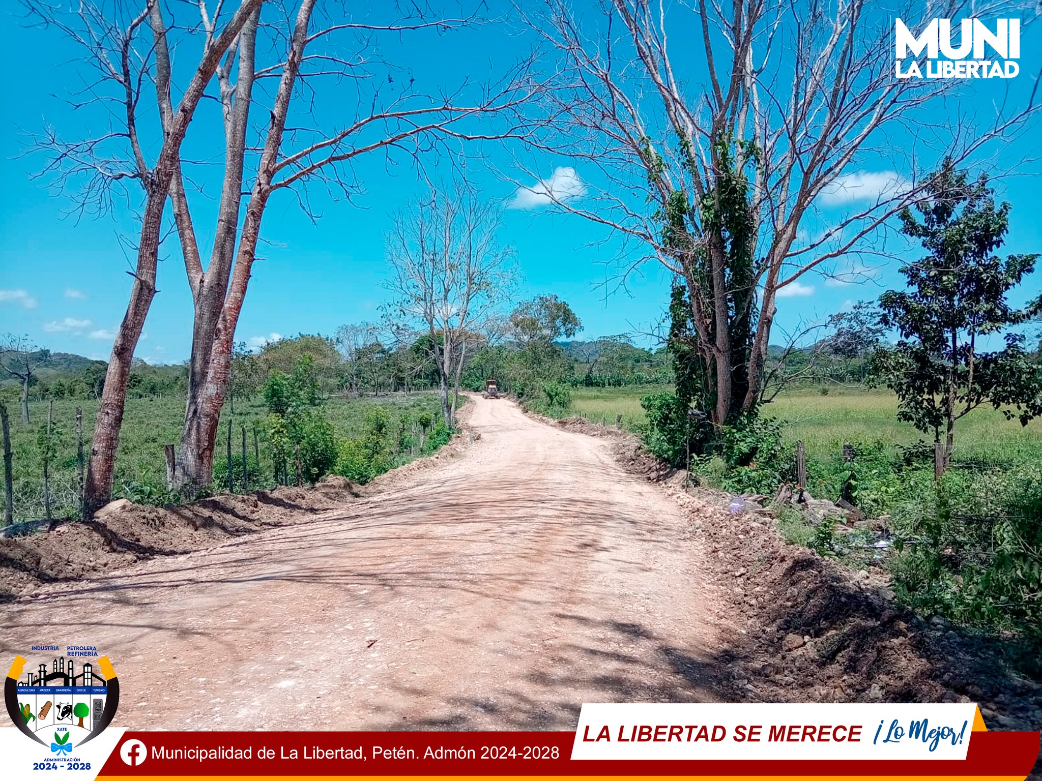 El Gobierno Municipal de La Libertad, Petén informa que se han iniciado los trabajos de mantenimiento en la calle de acceso del tramo Villa Hermosa – Pozo Azul.