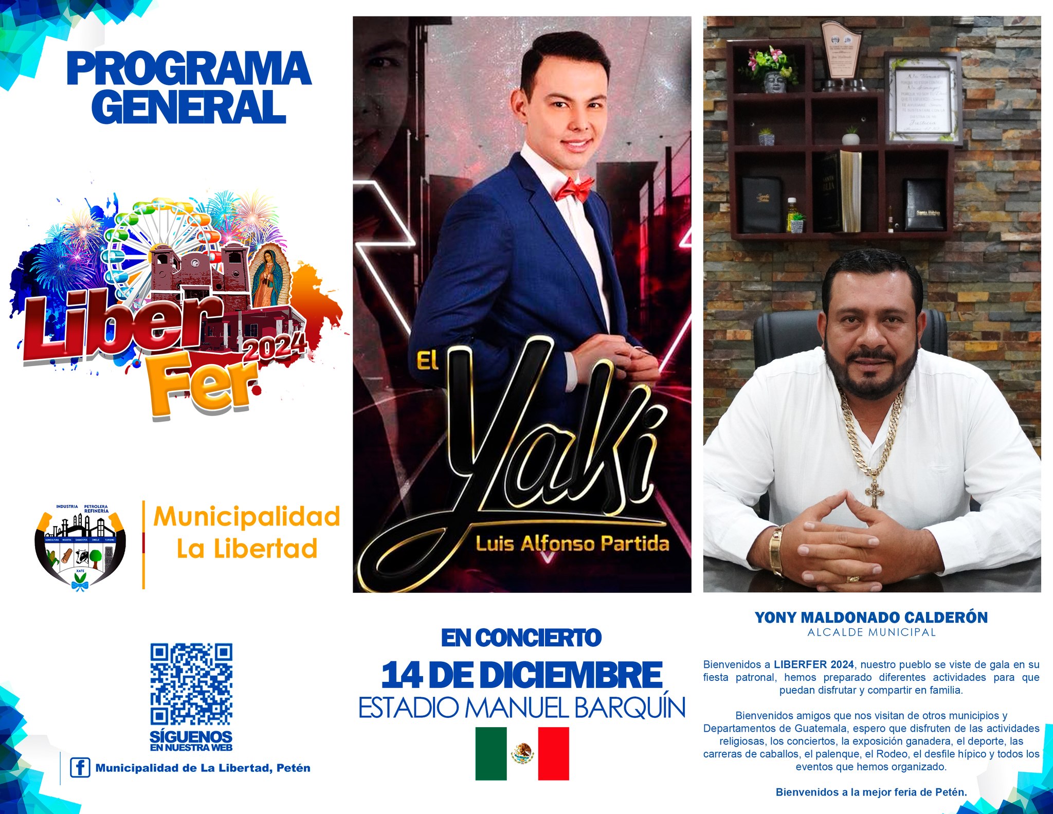 Desarrollo Social Programa General de Actividades de la Feria Titular y Patronal de La Libertad, Petén. Por milton Hernandez Publicado el 5 diciembre 2024 Compartir Tweet Compartir Compartir Email Comentarios #LiberFer2024 #LaMejorFeriaDePetén Relacionado:portada Compartir Tweet Compartir Compartir Email Recomendado ¡Ven a Nuestro Mercadito Campesino! Municipalidad de La Libertad, Petén INFORMA👇👇 Colaboradores Municipales Realizan Trabajos de Pintura de Todos los Túmulos en el Casco Urbano