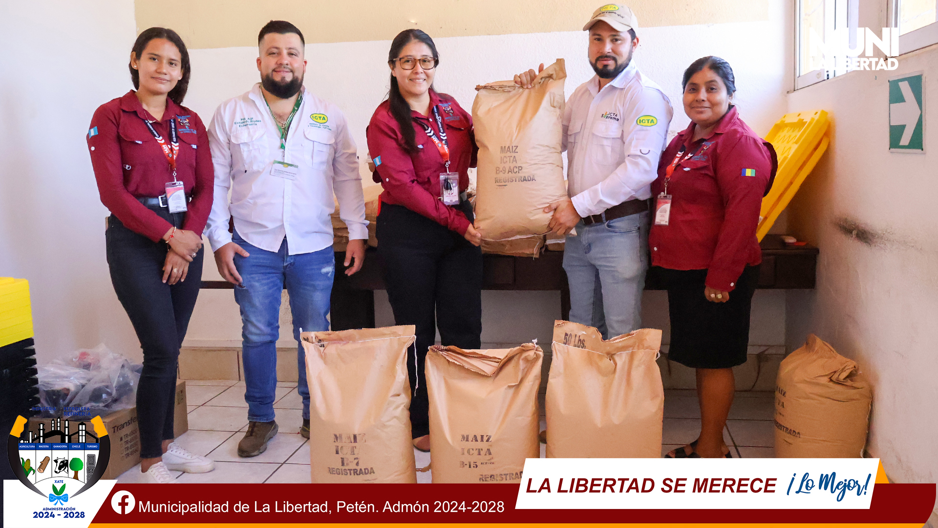 El Instituto de Ciencia y Tecnología Agrícolas –ICTA– realizó una donación de 8 quintales de semilla mejorada de calidad Registrada a la Municipalidad de La Libertad, Petén, (ICTA B-7, ICTA B-9 e ICTA B-15) reafirmando nuestro compromiso con el desarrollo agrícola, la seguridad alimentaria y el bienestar de nuestras comunidades. Esta alianza estratégica 𝐬𝐢𝐞𝐦𝐛𝐫𝐚 𝐦𝐚́𝐬 𝐪𝐮𝐞 𝐬𝐞𝐦𝐢𝐥𝐥𝐚𝐬: 𝐬𝐢𝐞𝐦𝐛𝐫𝐚 𝐨𝐩𝐨𝐫𝐭𝐮𝐧𝐢𝐝𝐚𝐝𝐞𝐬, fortalece al productor y une esfuerzos por un municipio más próspero y productivo.