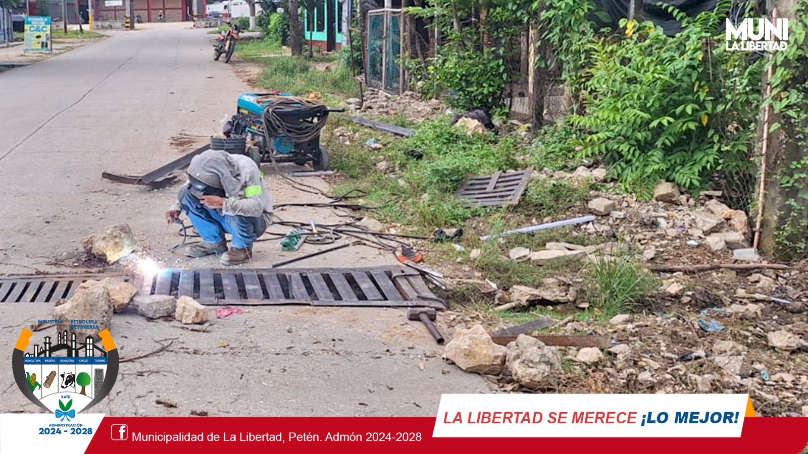 Por instrucciones del Sr. Alcalde Municipal #YonyMaldonadoCalderon trabajamos en la reparación de rejillas de cunetas que sirven de paso de aguas pluviales en la zona central de La Libertad.