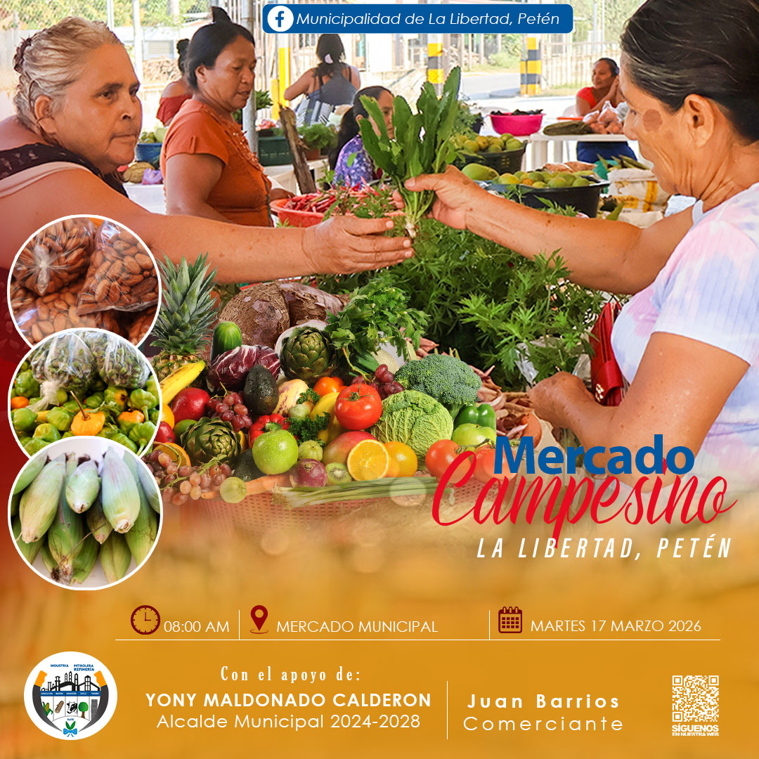 Municipalidad de La Libertad estará realizando el Mercado Campesino, una actividad que permite a los pequeños productores y agricultores del Micro Región Central ofrecer sus productos y cosechas.