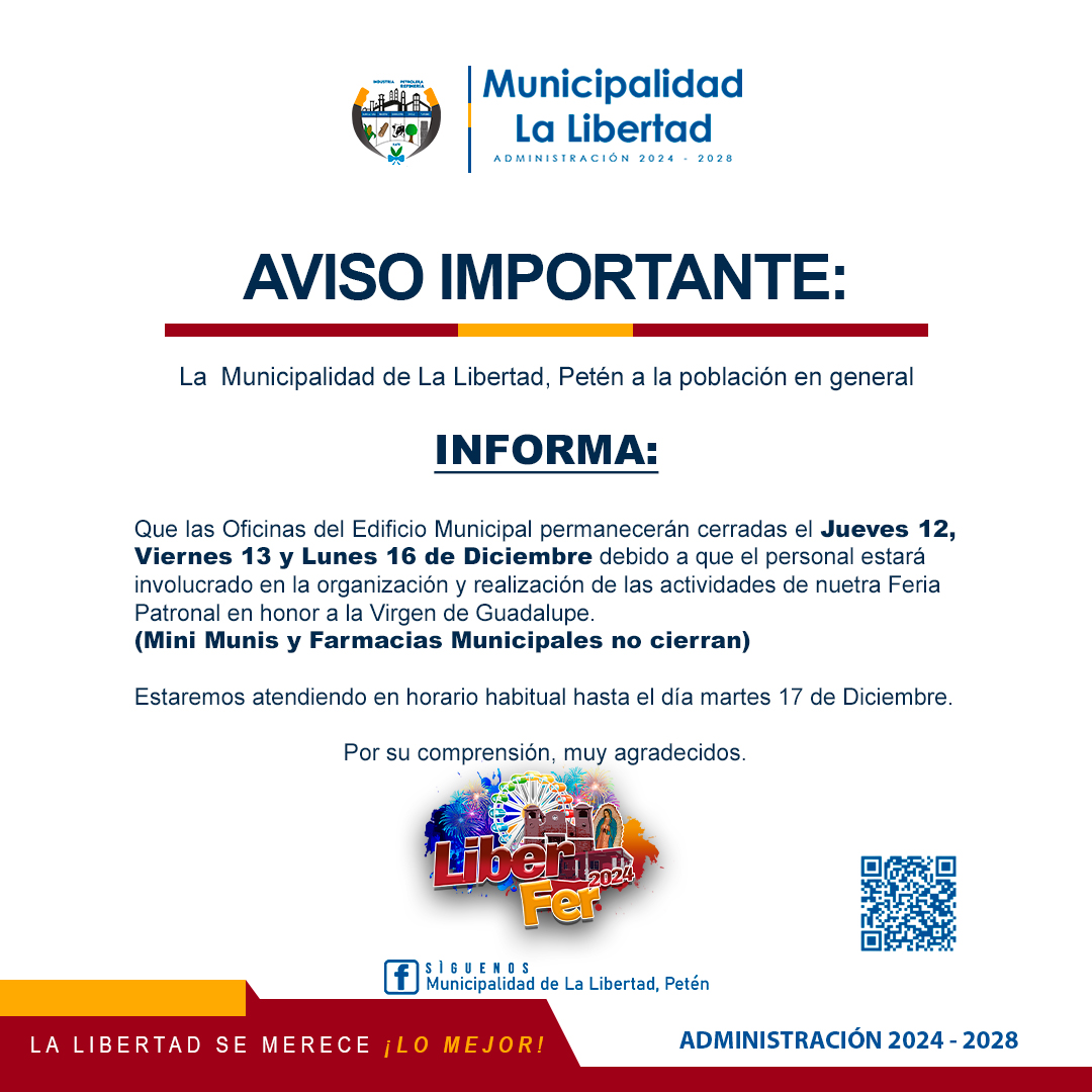 Comunicado Municipalidad de La Libertad, Petén INFORMA: Por milton Hernandez Publicado el 10 diciembre 2024 Compartir Tweet Compartir Compartir Email Comentarios Relacionado:portada Compartir Tweet Compartir Compartir Email Recomendado Traslado de paciente desde Vista Hermosa km. 35 hacia San Benito Petén. Alcalde Apoya a Vecinos del Caserío La Caoba con Block para Circulación del Campo de Fútbol 🚧🚜Continuamos Avanzando en el Mejoramiento de Calles en el tramo Villa Hermosa – Pozo Azul