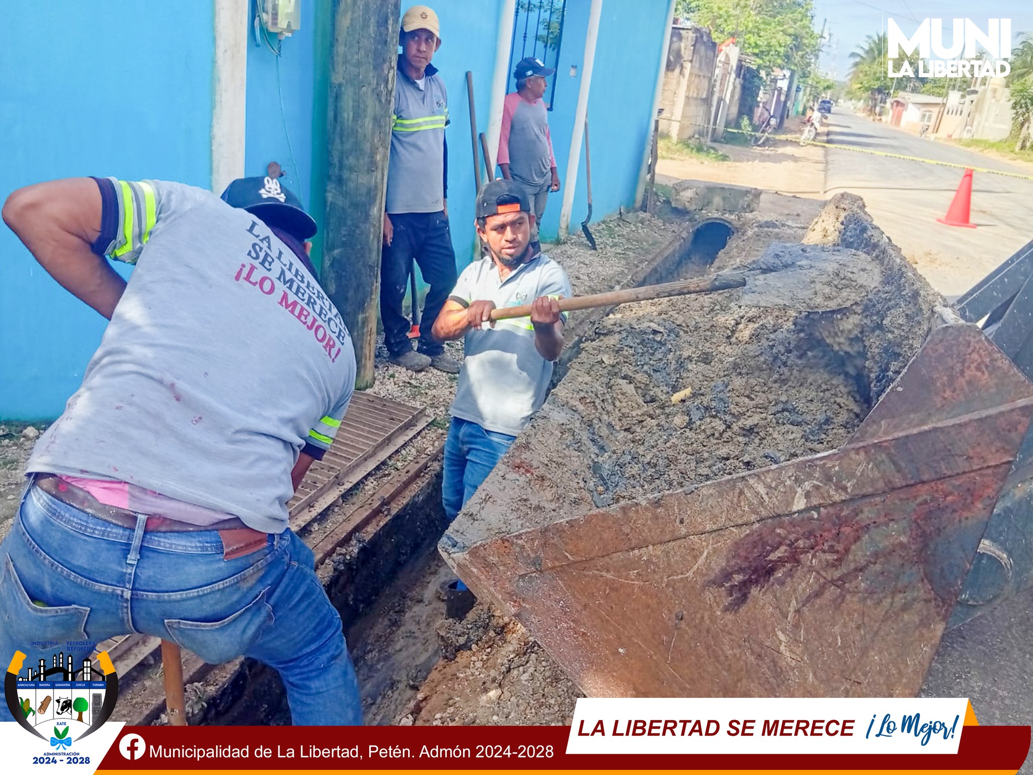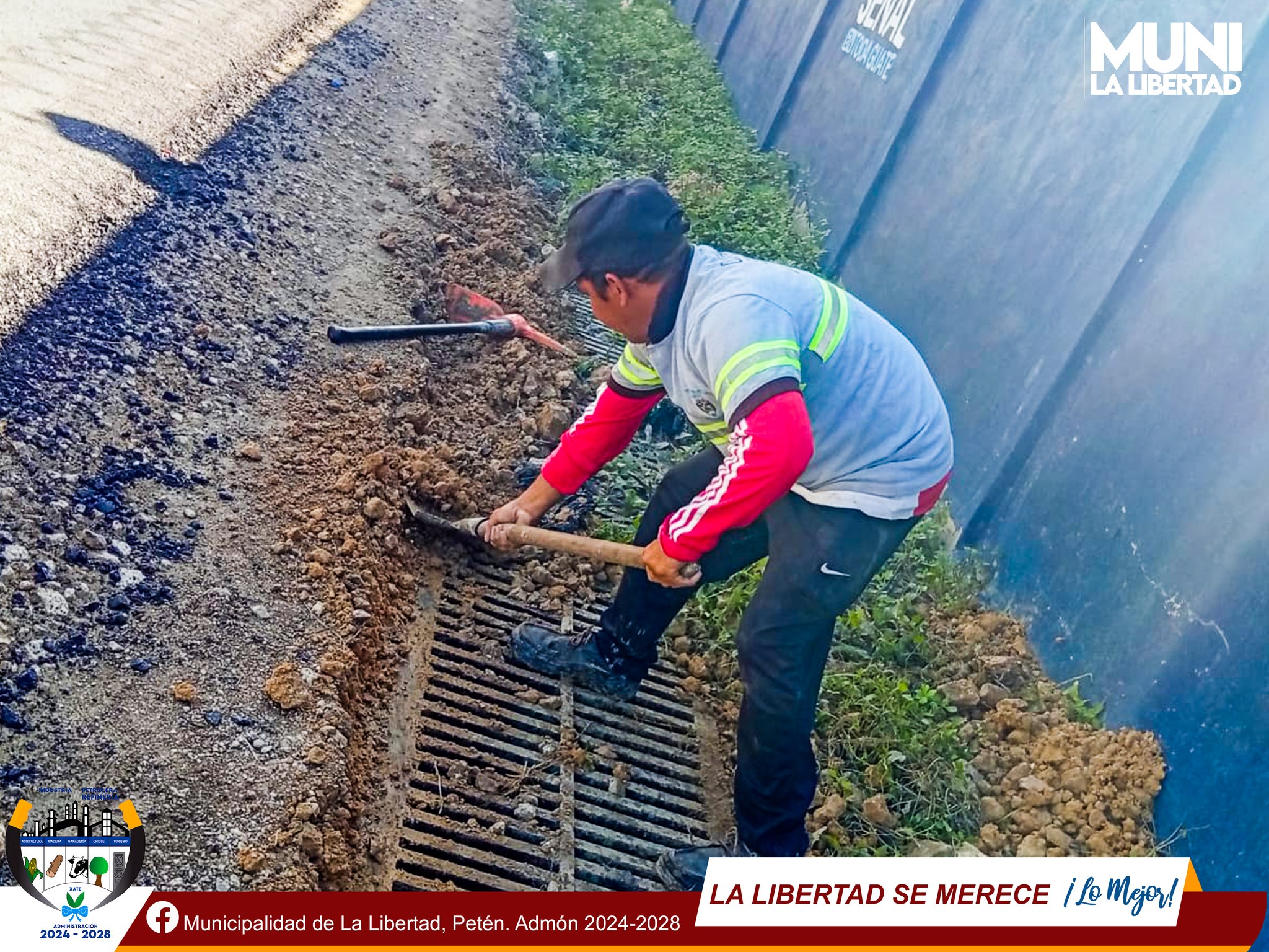 Por instrucciones del Sr. Alcalde Municipal #YoniMaldonado Calderón, el equipo de colaboradores municipales del #TrenDeAseo realizan la limpieza de las cunetas en el área central de La Libertad.