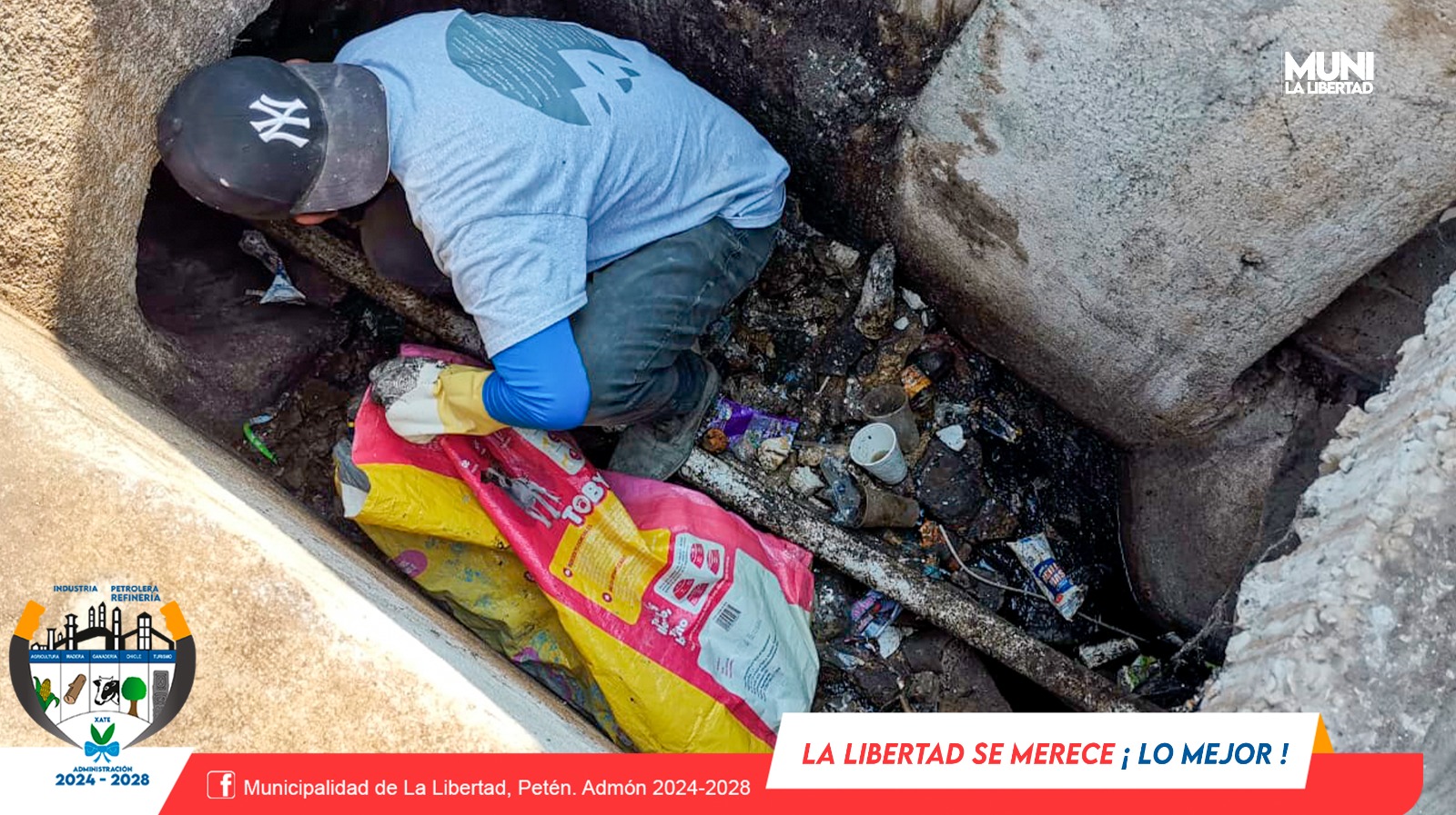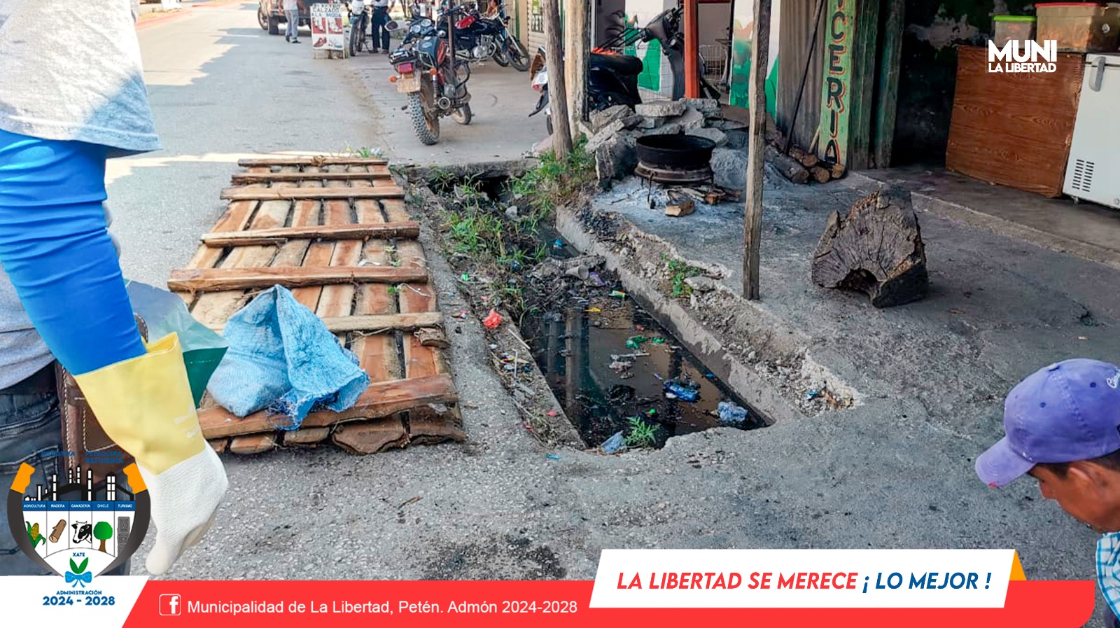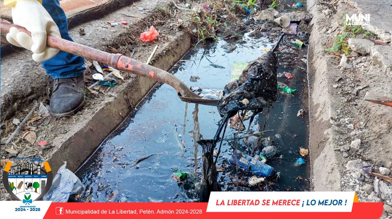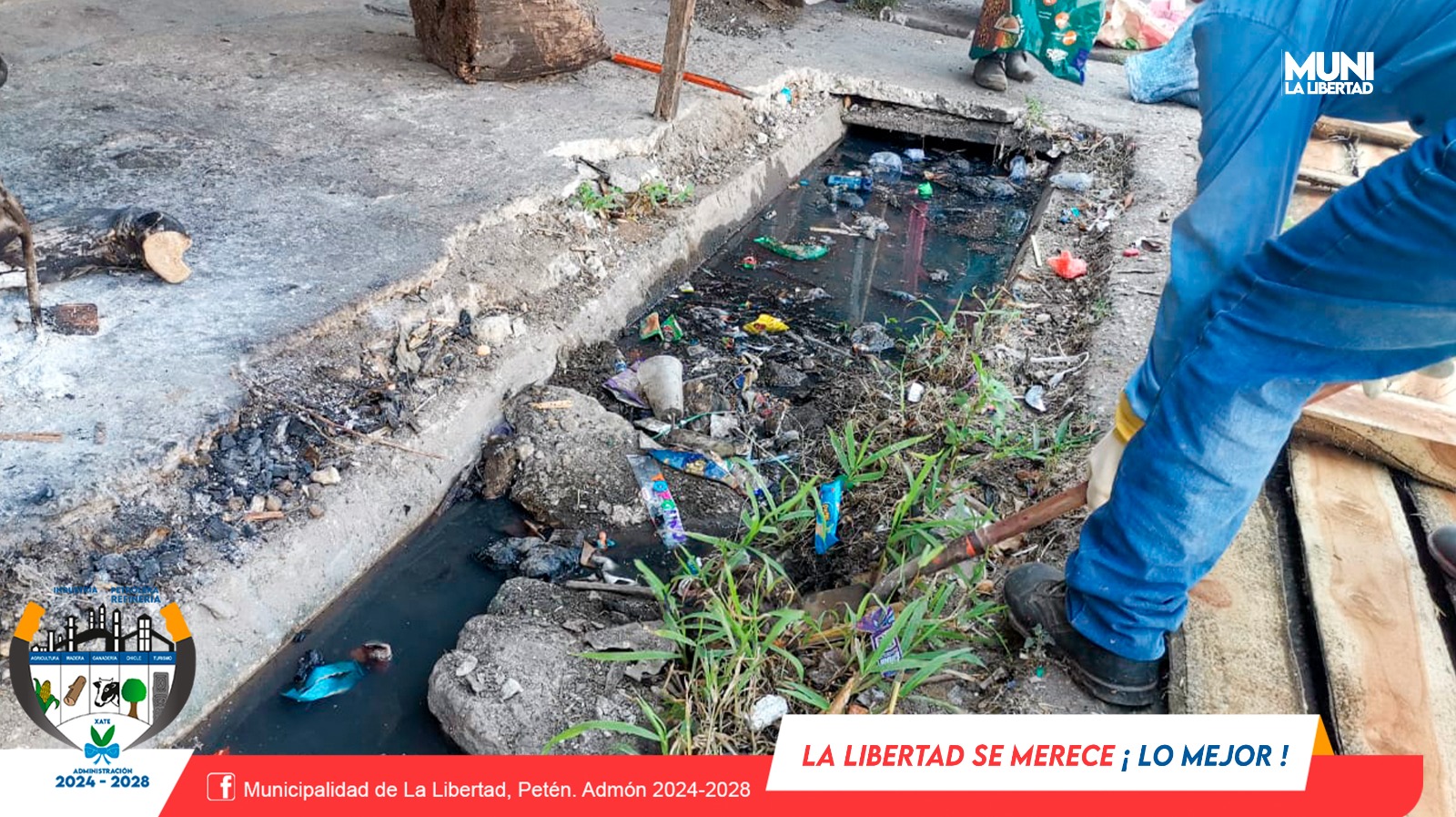 Por instrucciones del Sr. Alcalde Municipal Yony Maldonado Calderón, colaboradores de la Municipalidad de La Libertad realizan limpieza en las cunetas de Barrio El Centro. Las cunetas son espacios donde se produce una gran concentración de residuos. Su acumulación puede provocar el aumento de inundaciones.