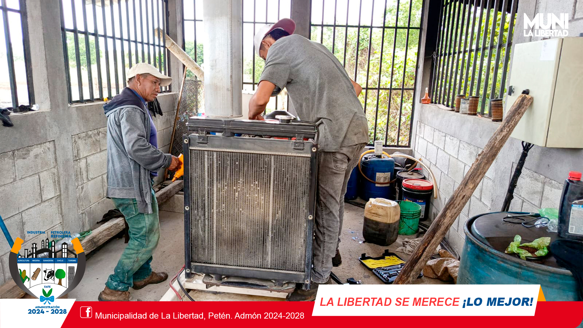 La Municipalidad de La Libertad, Peten apoyó con los filtros, aceite y mano de obra para servicio de generador del pozo que abastece de agua a la comunidad de Nueva Florida, Micro Región #ElPlantel