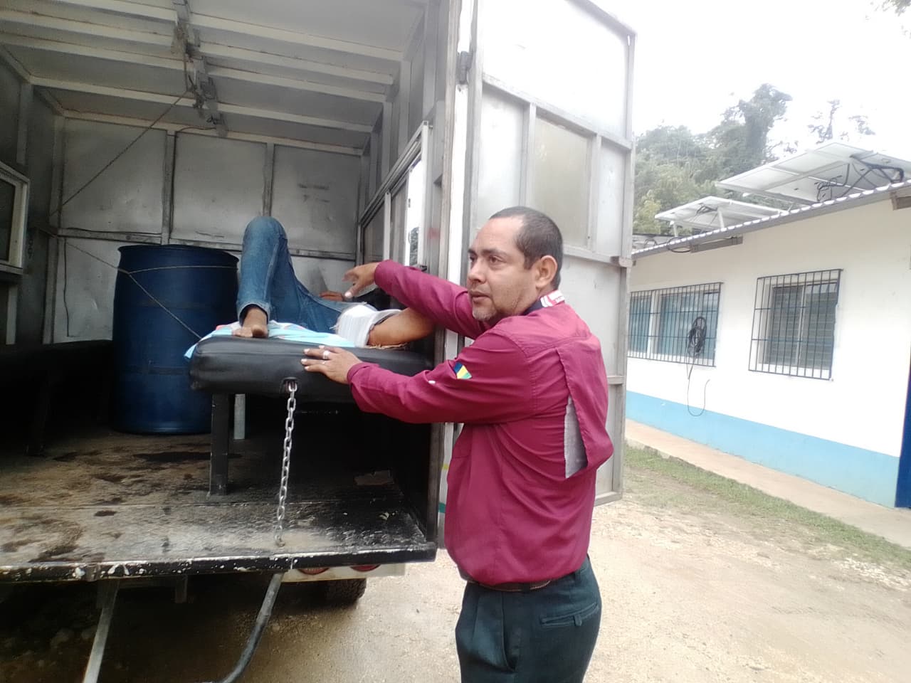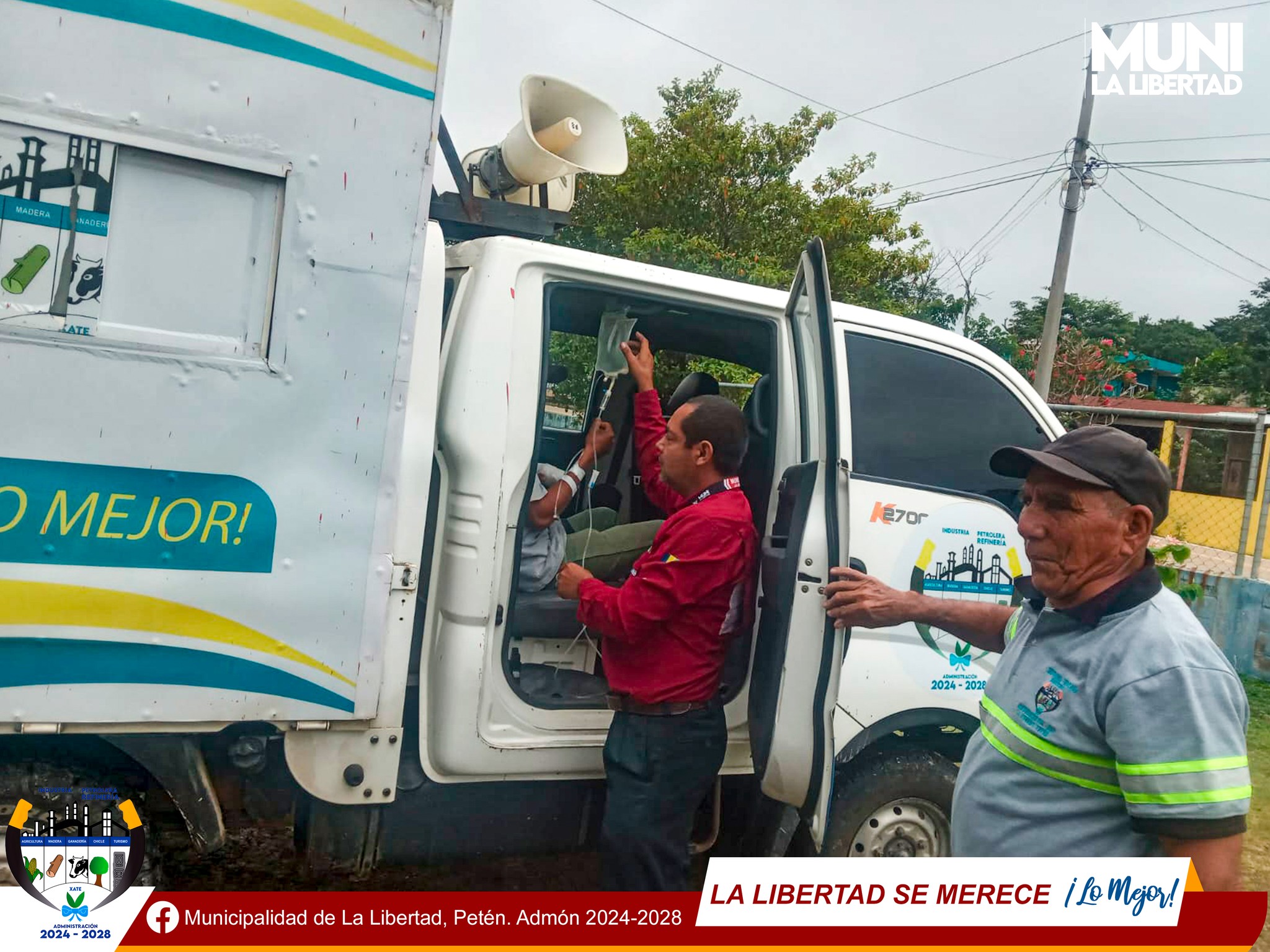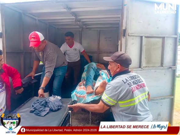 En este momento, el Prof. José Luis Ordoñez, Concejal Municipal, se encuentra coordinando el traslado de dos pacientes en nuestra ambulancia municipal desde el Centro de Salud del Naranjo Frontera hacia la Emergencia del Centro de Atención Permanente CAP de La Libertad, Petén.