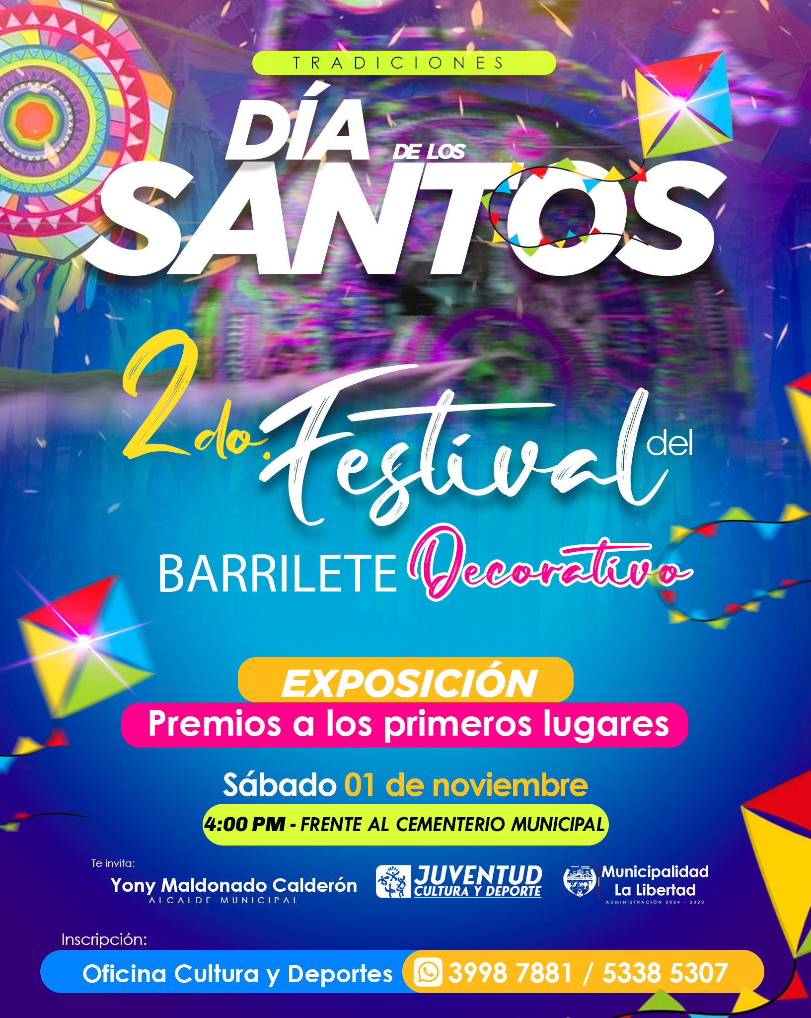 Los barriletes participantes deberán de ser exhibidos el día 1 de noviembre desde las 9 de la mañana frente al Cementerio Municipal y la premiación será a las 4:00 PM.