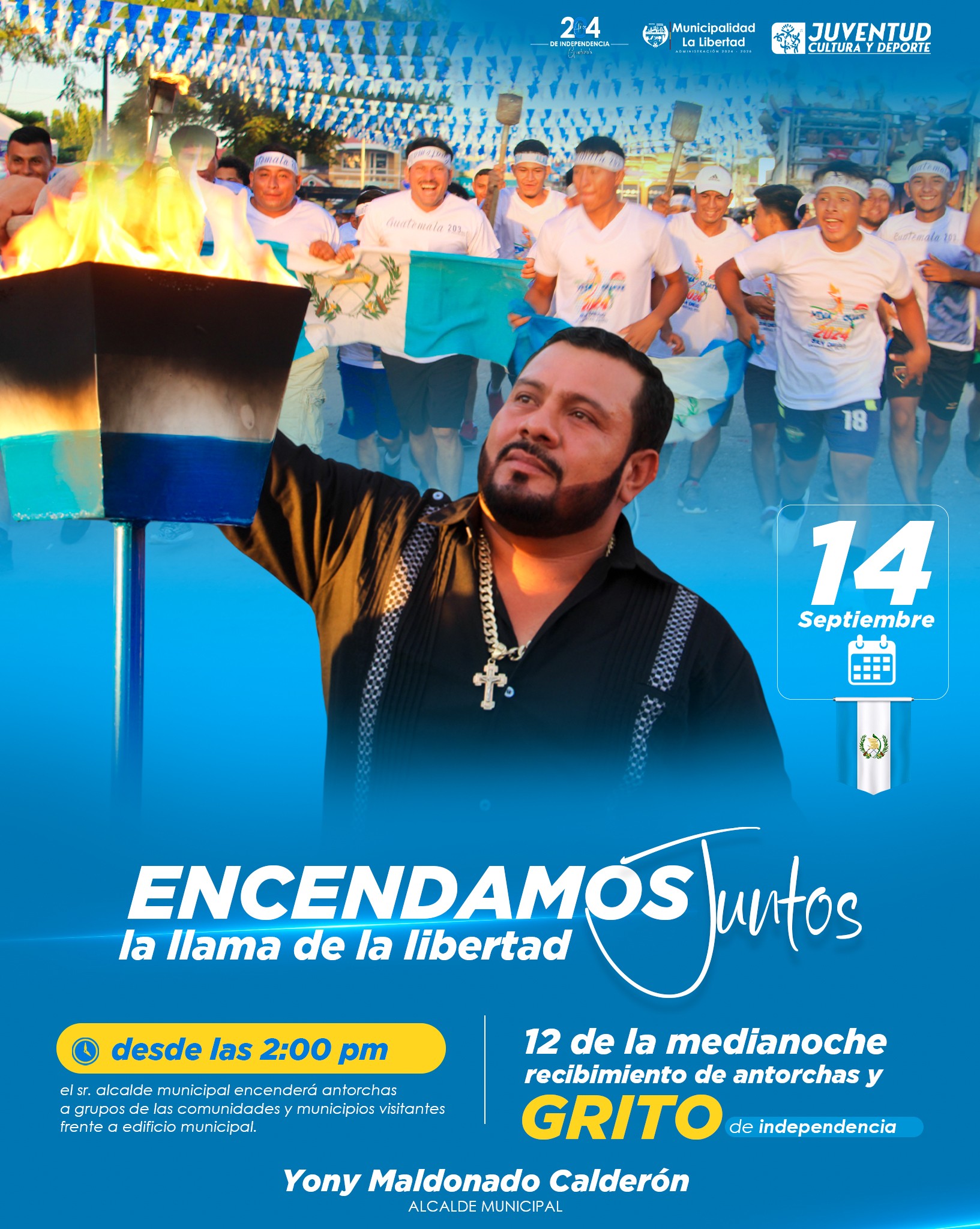 Desde las 2:00 PM el Sr. Alcalde Municipal #YonyMaldonado iniciará a encender las antorchas a grupos organizados de las comunidades y municipios visitantes.